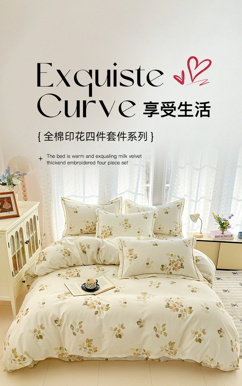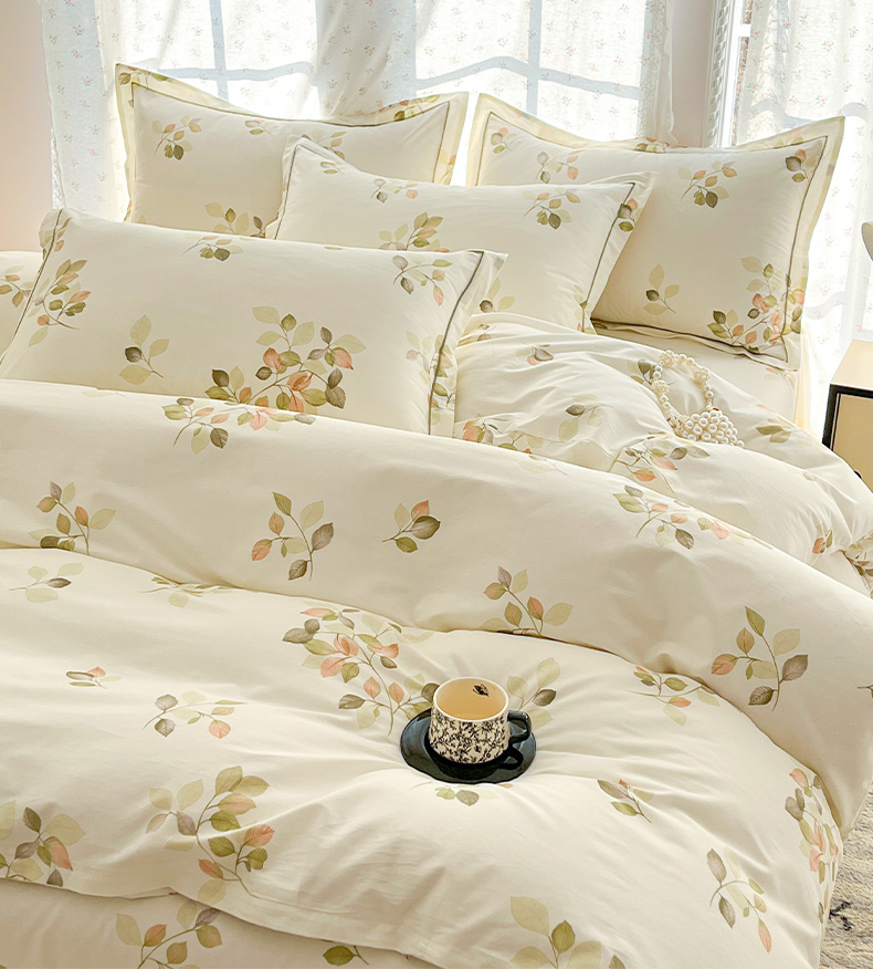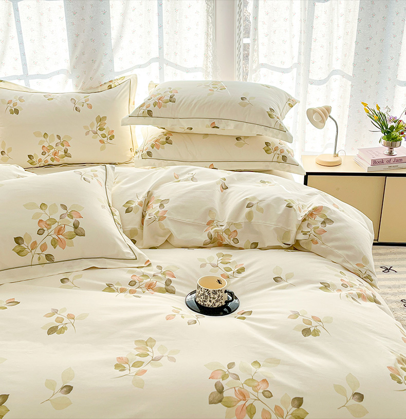 帛美家纺 2025新款加厚纯棉全棉磨毛印花四件套 一叶知秋,一叶知秋