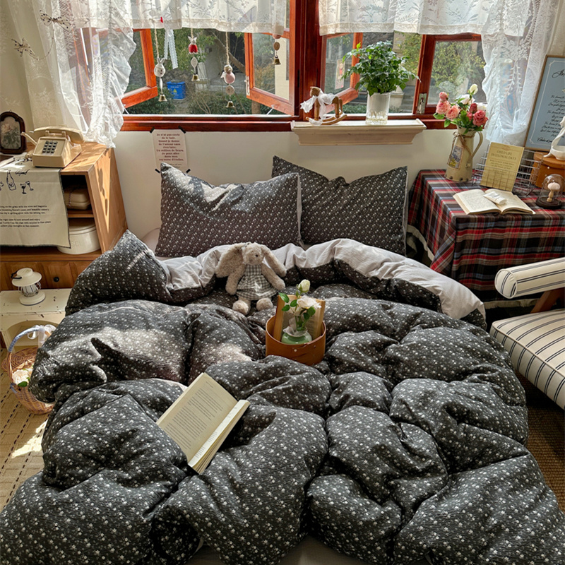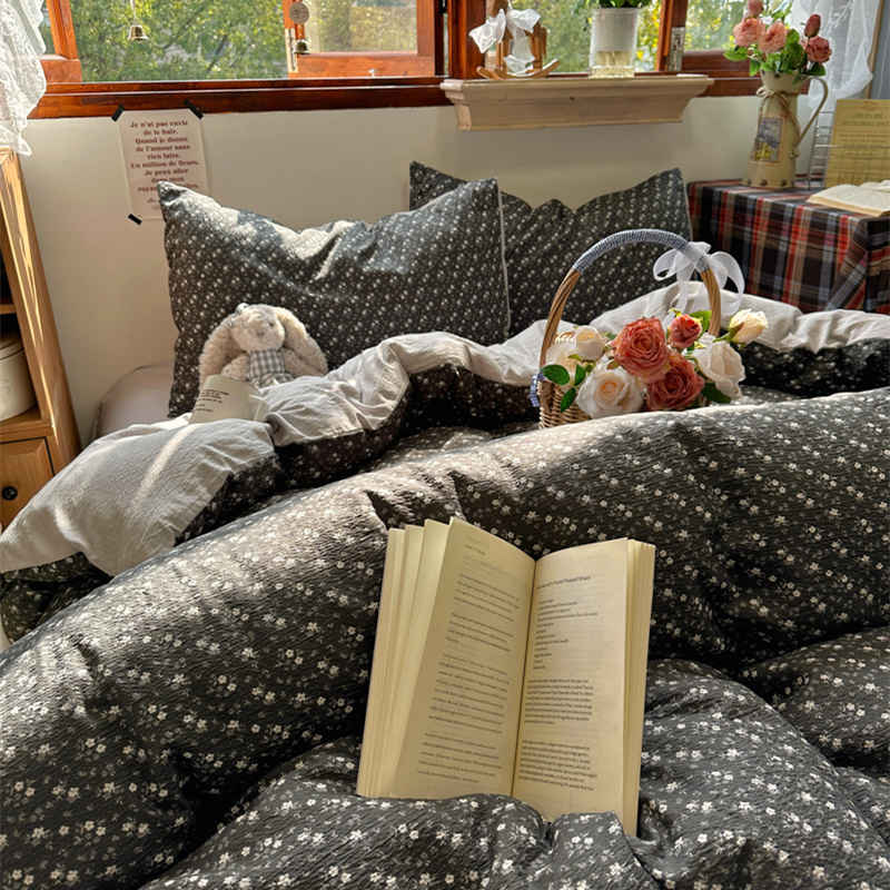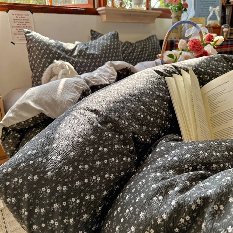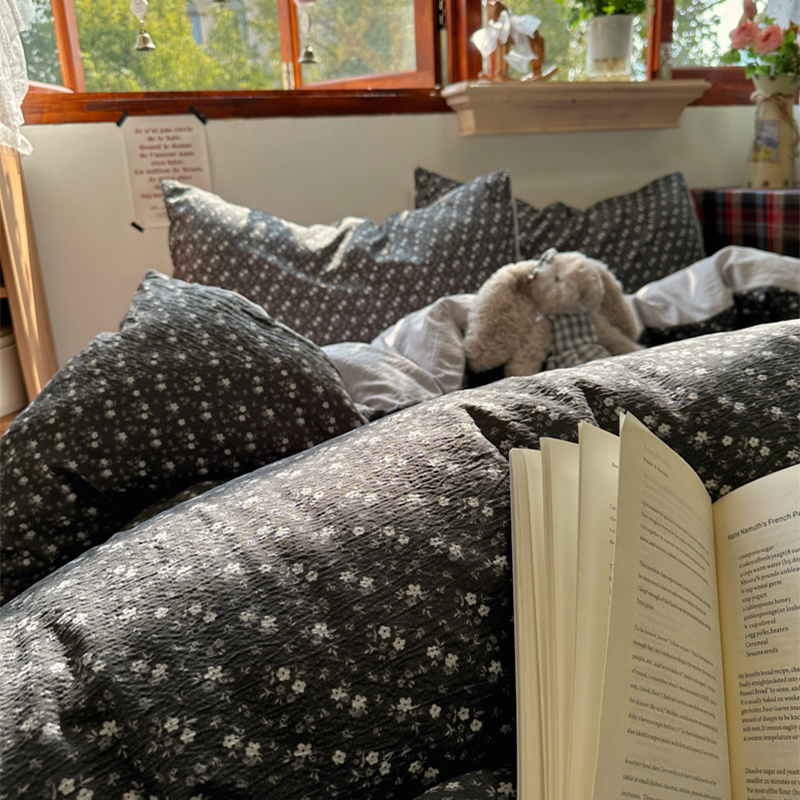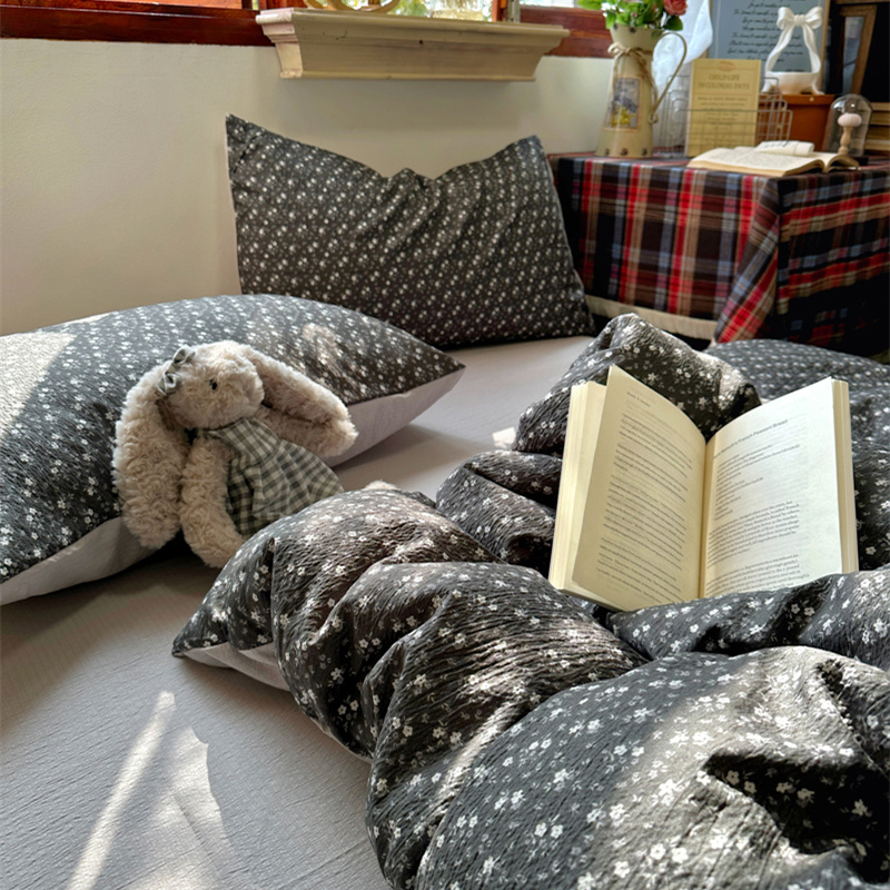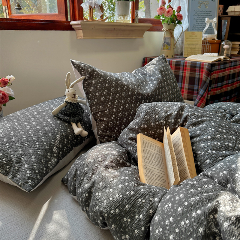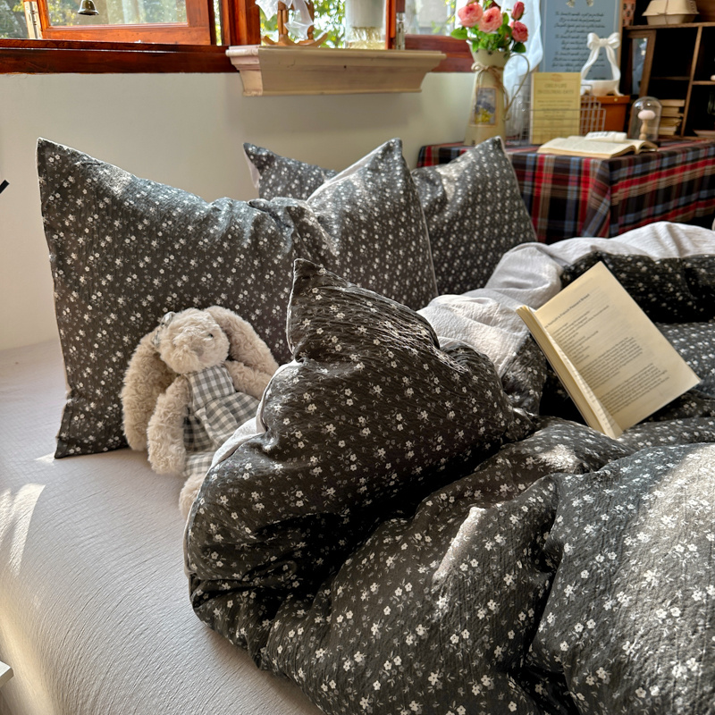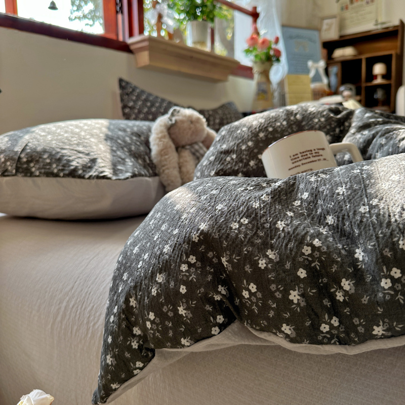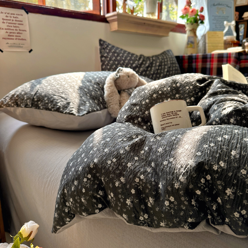 当前位置: 91家纺网 > 商品网购 > 床品套件 > 四件套 > 化纤活性四件套 > 阿曼达 2026新款日韩系复古印花小碎花软糯贴肤慵懒伴眠超治愈的床单床笠款四件套 小印-松月间.灰