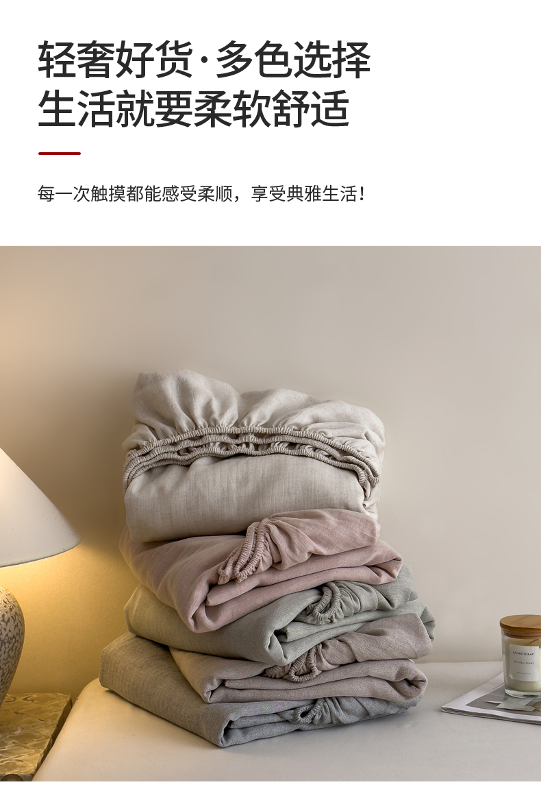 (总)席世家 2026新款纯色皱皱纱床单,芭乐粉,可可咖,梦幻紫,米白,奶茶棕,泡沫灰,森林绿,烟灰兰