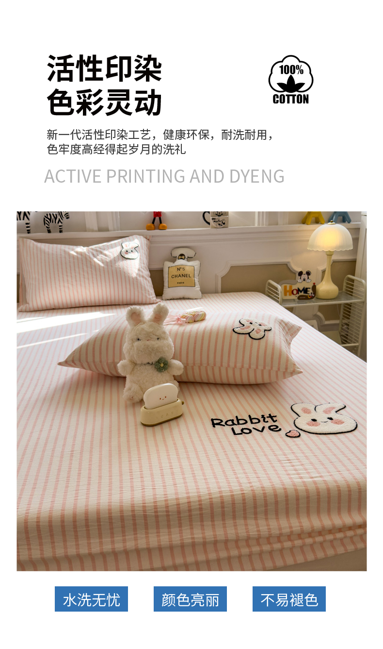 席世家 2026新款全棉水洗棉床笠 水洗棉-可爱兔
