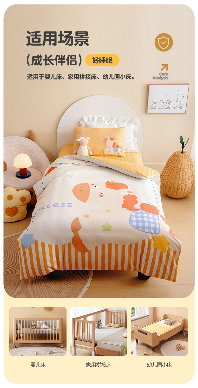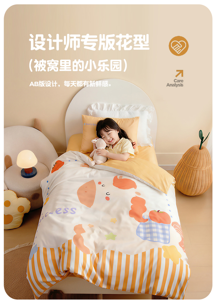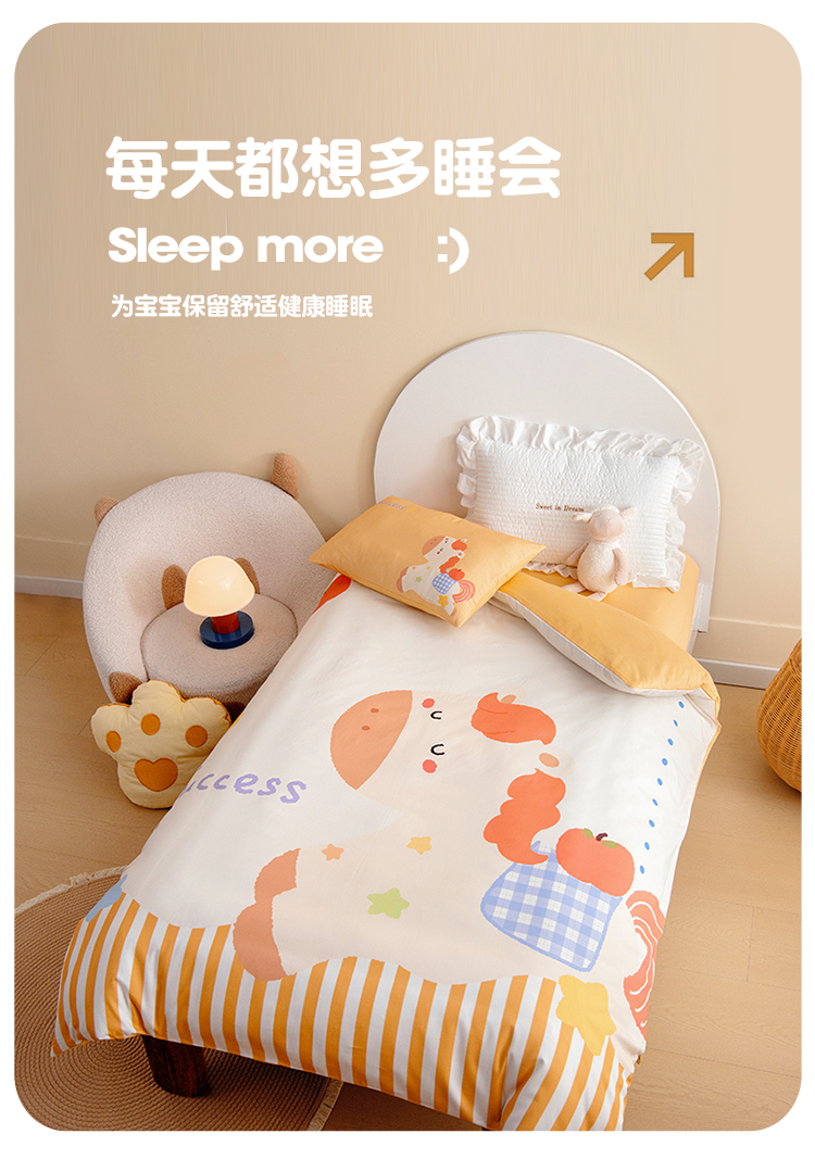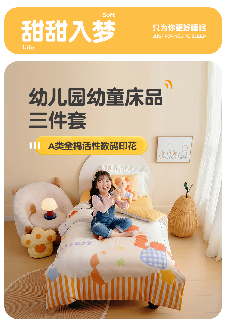 绒梦里 2026新款A类全棉卡通大版数码印花幼儿园被子三件套儿童套件被套,快乐芝士,波点企鹅,嘟嘟小车,粉萌小兔,奶茶兔兔,平安小马,俏皮恐龙,幸运树,幸运小熊,熊猫宝贝,紫色小兔,足球宝贝