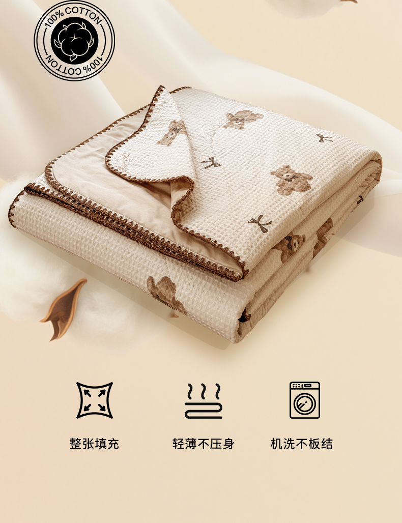 当前位置: 91家纺网 > 商品网购 > 被子 > 夏被 > 雯雨家纺 2026新款里外全棉华夫格三角针夏被 萌动时光
