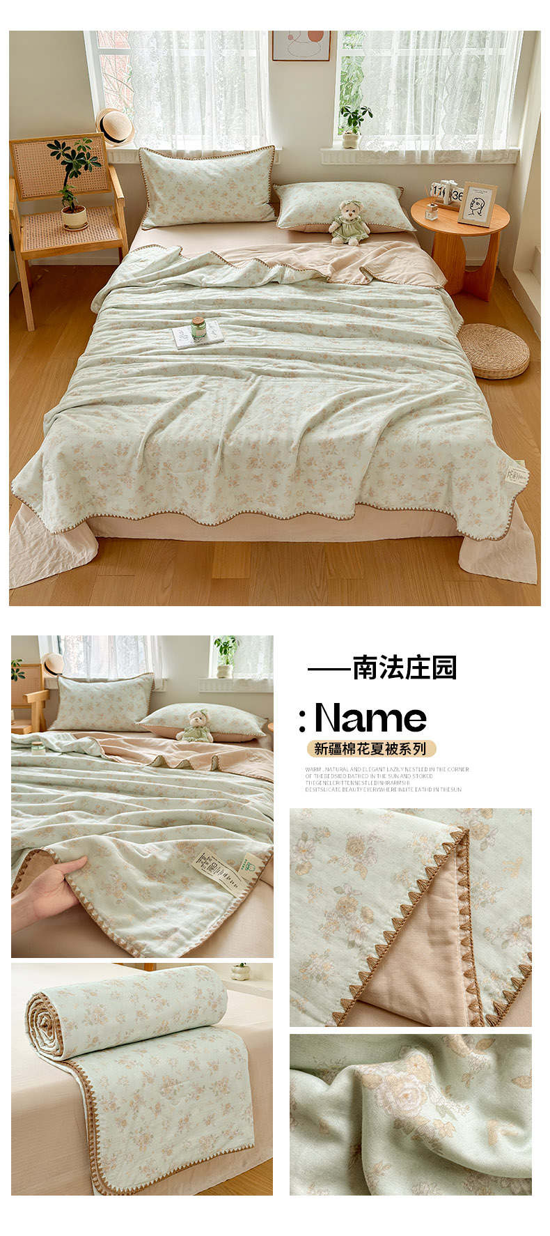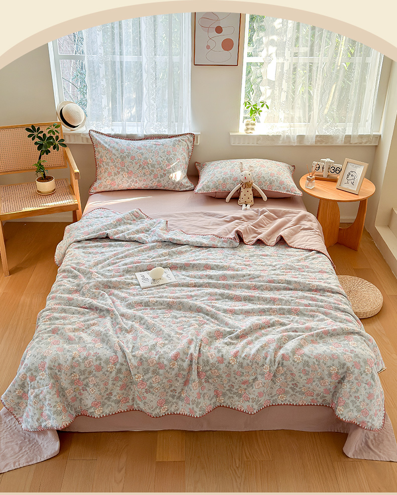 • 91家纺网 家纺一手货源 找家纺 雯雨家纺 2026新款全棉双层纱新疆棉花夏被空调被被子被芯 香水繁花-兰