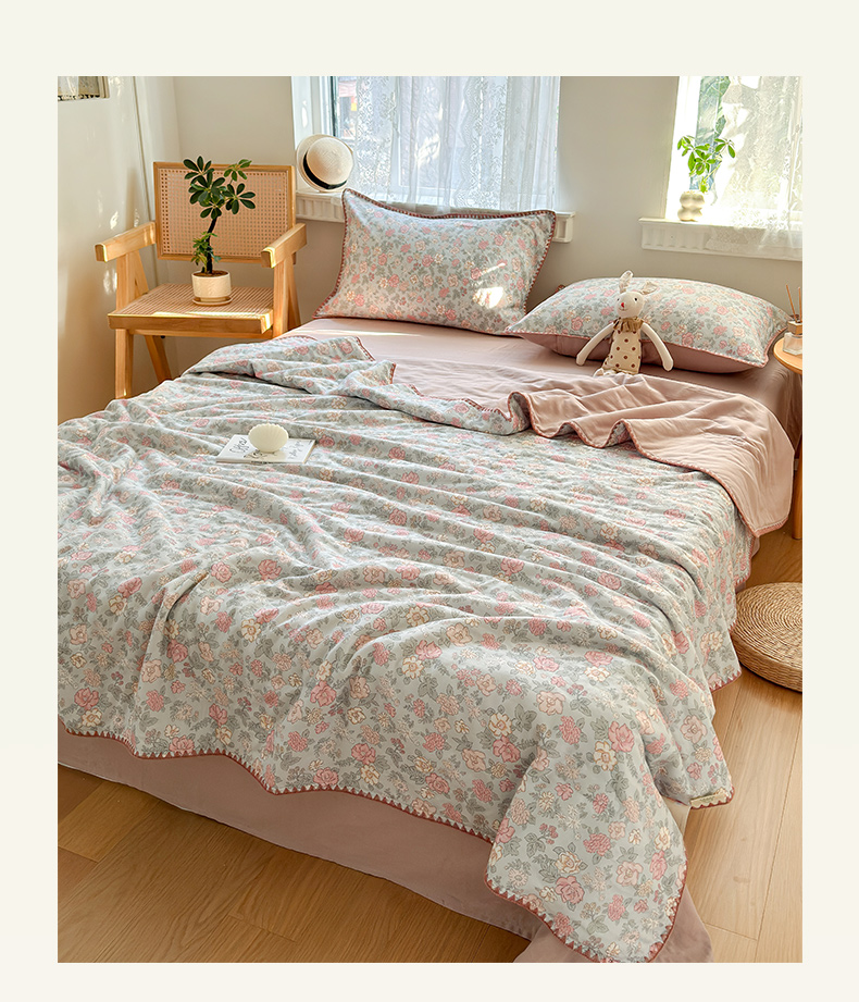 雯雨家纺 2026新款全棉双层纱新疆棉花夏被空调被被子被芯 香水繁花-兰