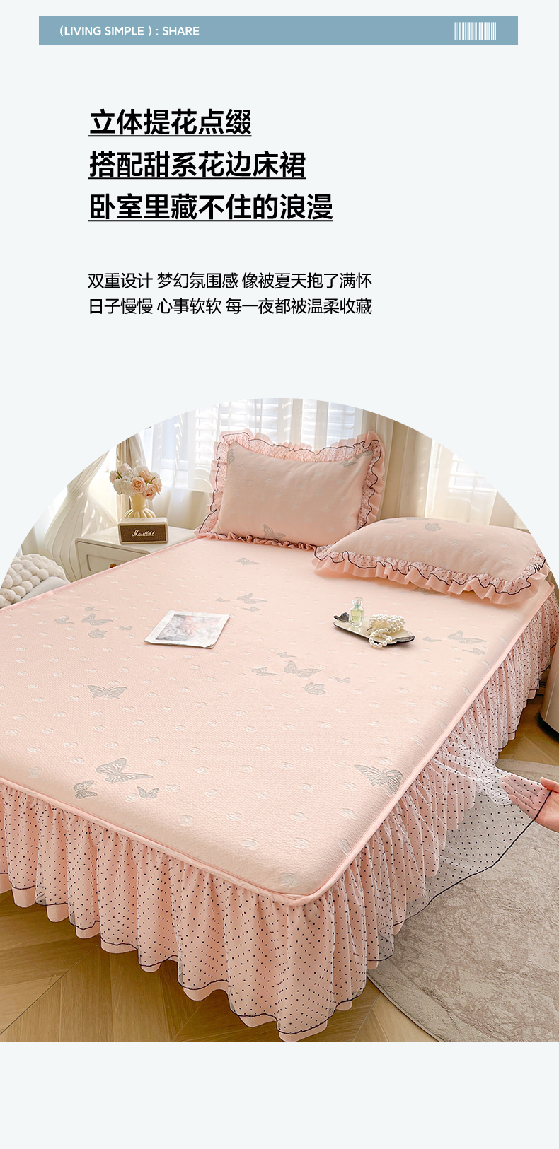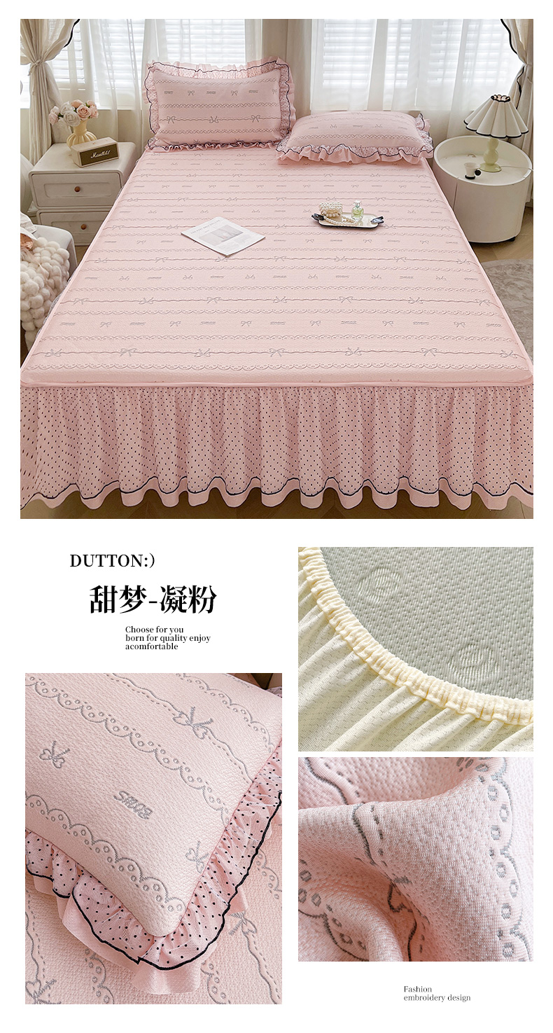 当前位置: 91家纺网 > 商品网购 > 床上用品 > 凉席 > 其他凉席 > 眠势力 2026新款冰豆豆床裙款床笠夏天冰凉豆豆空调席子带花边床裙床笠二合一 蝶梦玫瑰-清绿