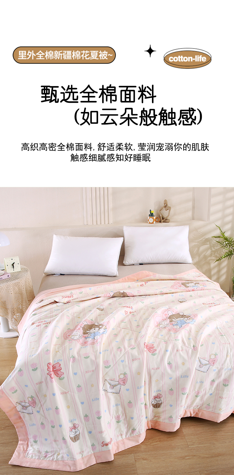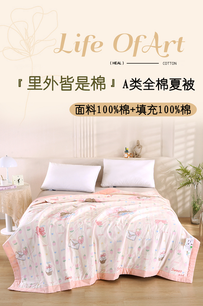 米萝家居 2026新款里外全棉夏被纯棉棉棉花夏凉被空调被 被子被芯【风格二】 邻家女孩