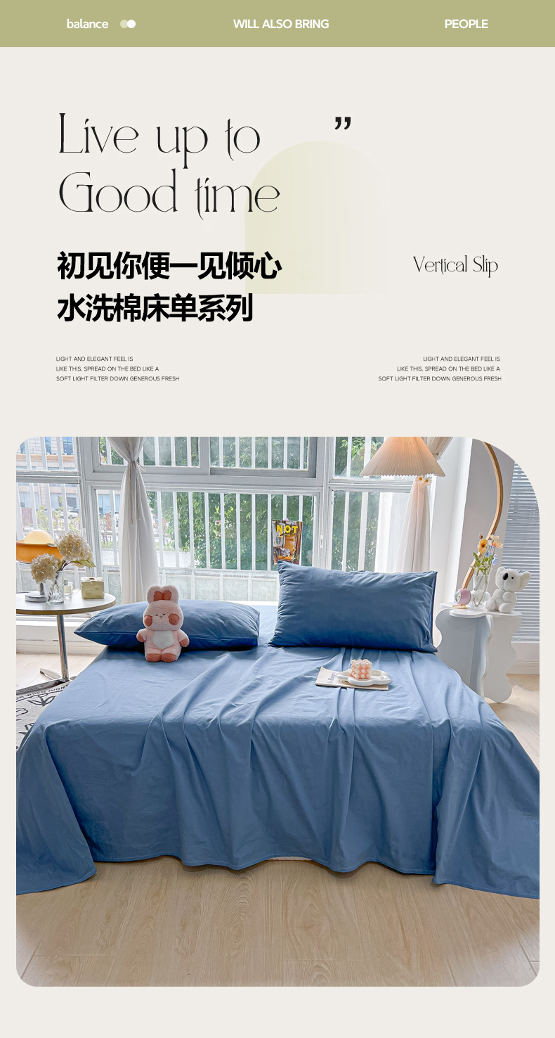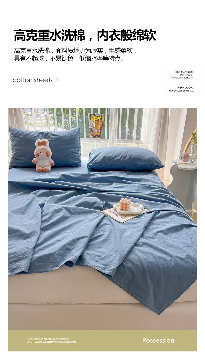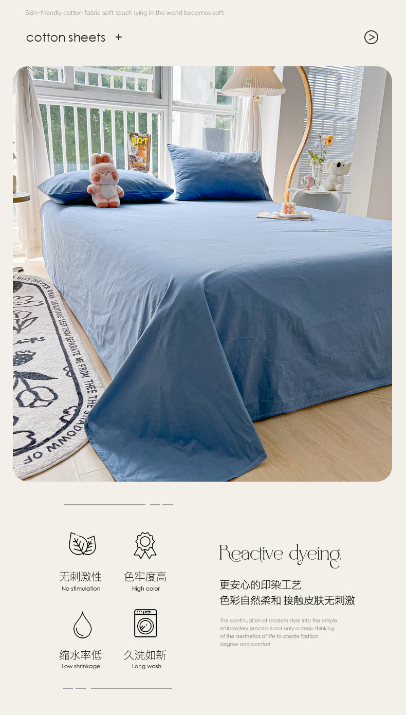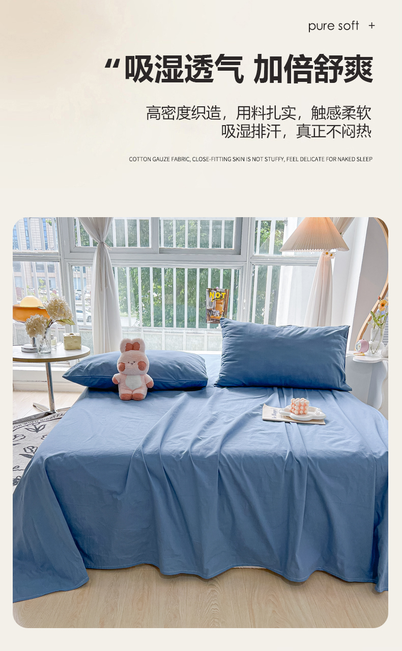 爱彼家纺 2026新款夏季新款纯色磨毛亲肤柔软单床单床单三件套 纯色-浅兰