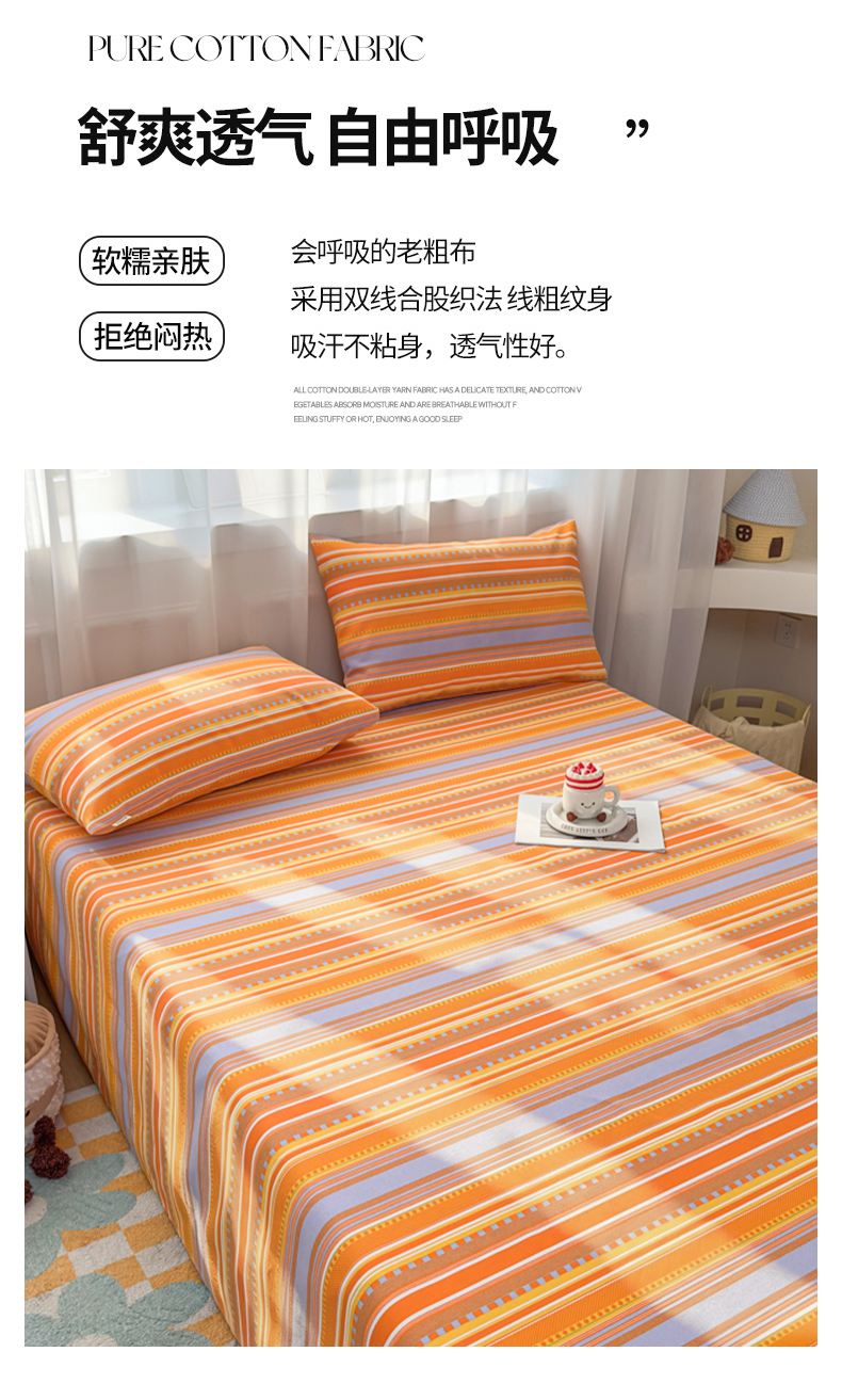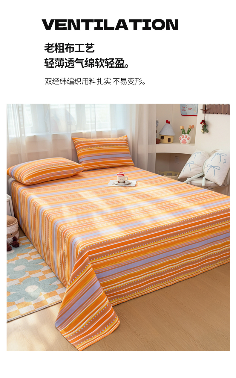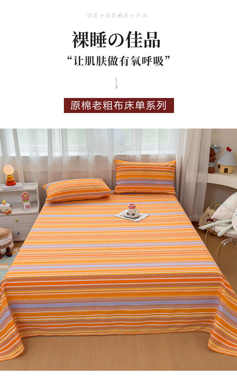 (总)爱彼家纺 2026夏季新款亲肤原棉老粗布透气印花床单单件热门热门床单款新升级-细沙老粗布