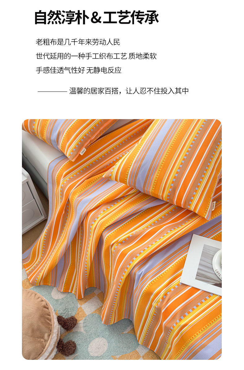 商品名称:(总)爱彼家纺 2026夏季新款亲肤原棉老粗布透气印花床单单件热门热门床单款新升级-细沙老粗布
