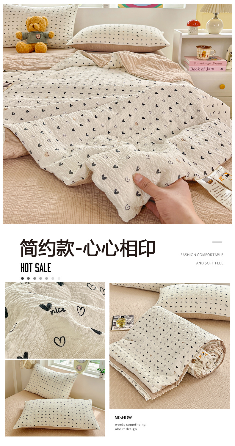 商品名称:利禾家纺 2026春夏新款泡芙纱简约夏被四件套夏凉被空调被 心心相印-简约