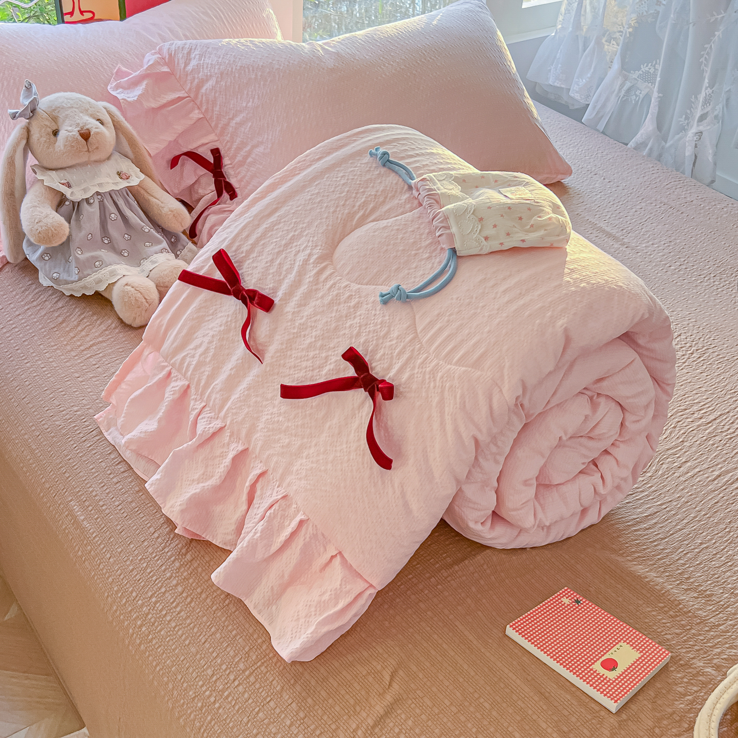 爱彼家纺 2026新款纯色花边蝴蝶结夏被空调被夏凉被 蝴蝶结夏被-芝士奶冻