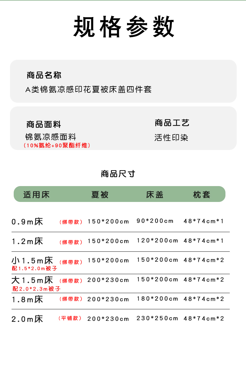 商品名称:(总)卡普家居 2026新款A类锦氨凉感印花夏被床盖床单款四件套