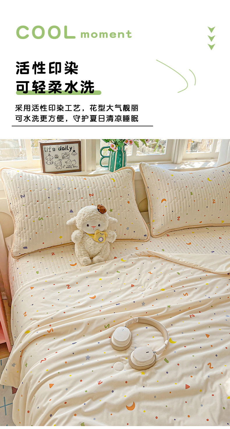 (总)卡普家居 2026新款A类锦氨凉感印花夏被床盖床单款三件套,幻彩星月,萌兔星愿,抹茶序曲,木马童话,奶粉修狗,奶盖Kitty,奶黄泰迪,奶咖萌宠,奶油兰花束,帕恰狗,青提奶冻,软糖小熊,条纹熊,星星人
