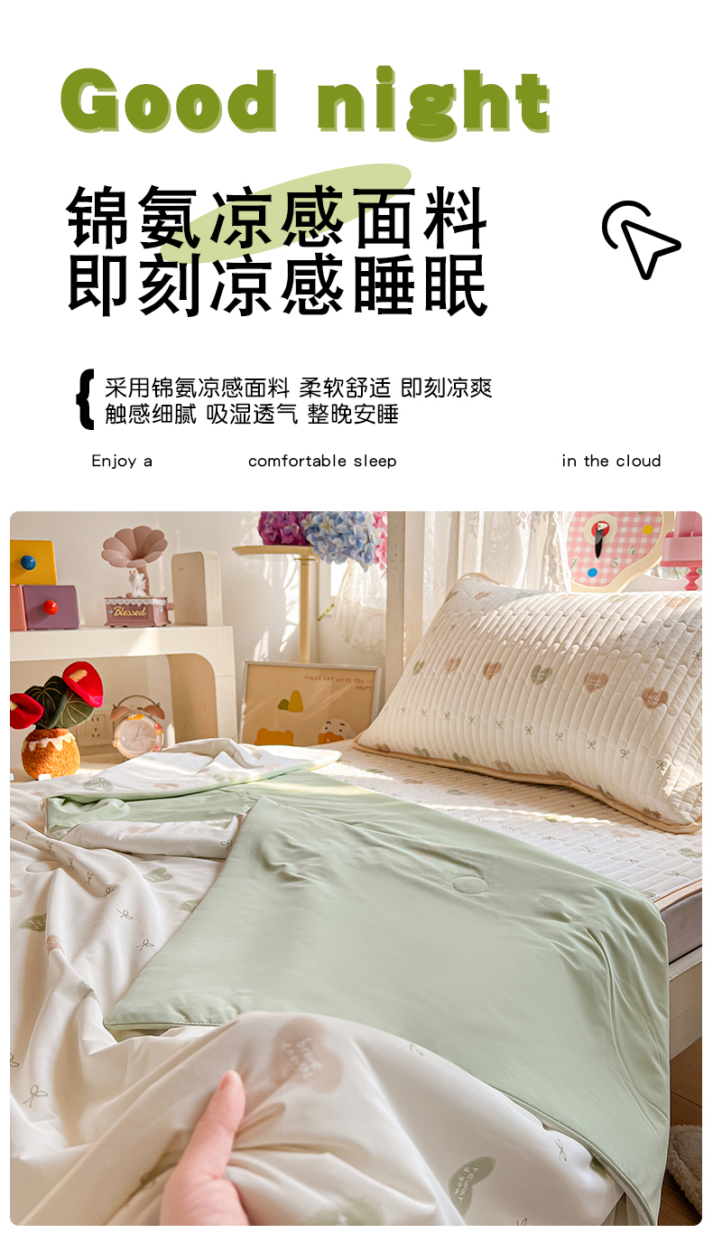 当前位置: 91家纺网 > 商品网购 > 床品套件 > 三件套 > 卡普家居 2026新款A类锦氨凉感印花夏被床盖床单款三件套 青提奶冻