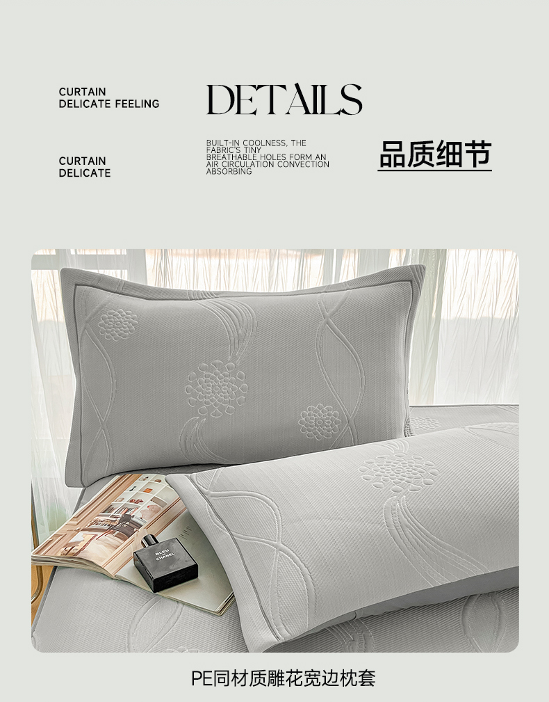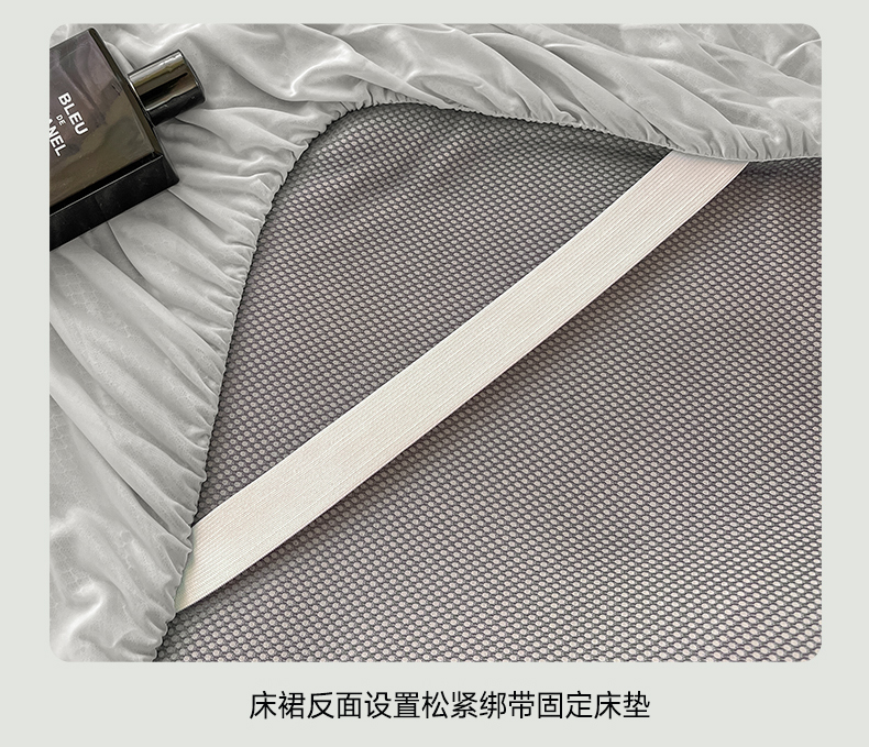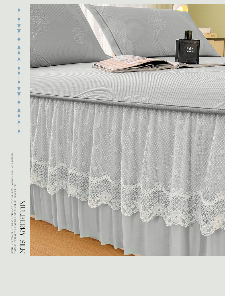 商品名称:库里梦家纺 2026新款高克重复合蕾丝花边PE高分子凉席-床裙款 芳菲-灰色