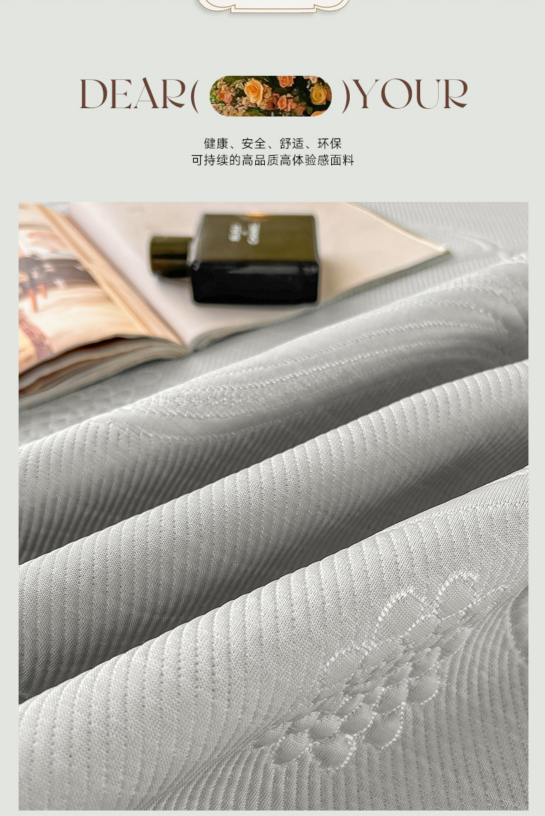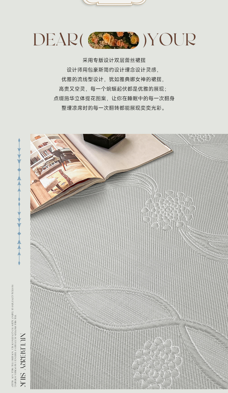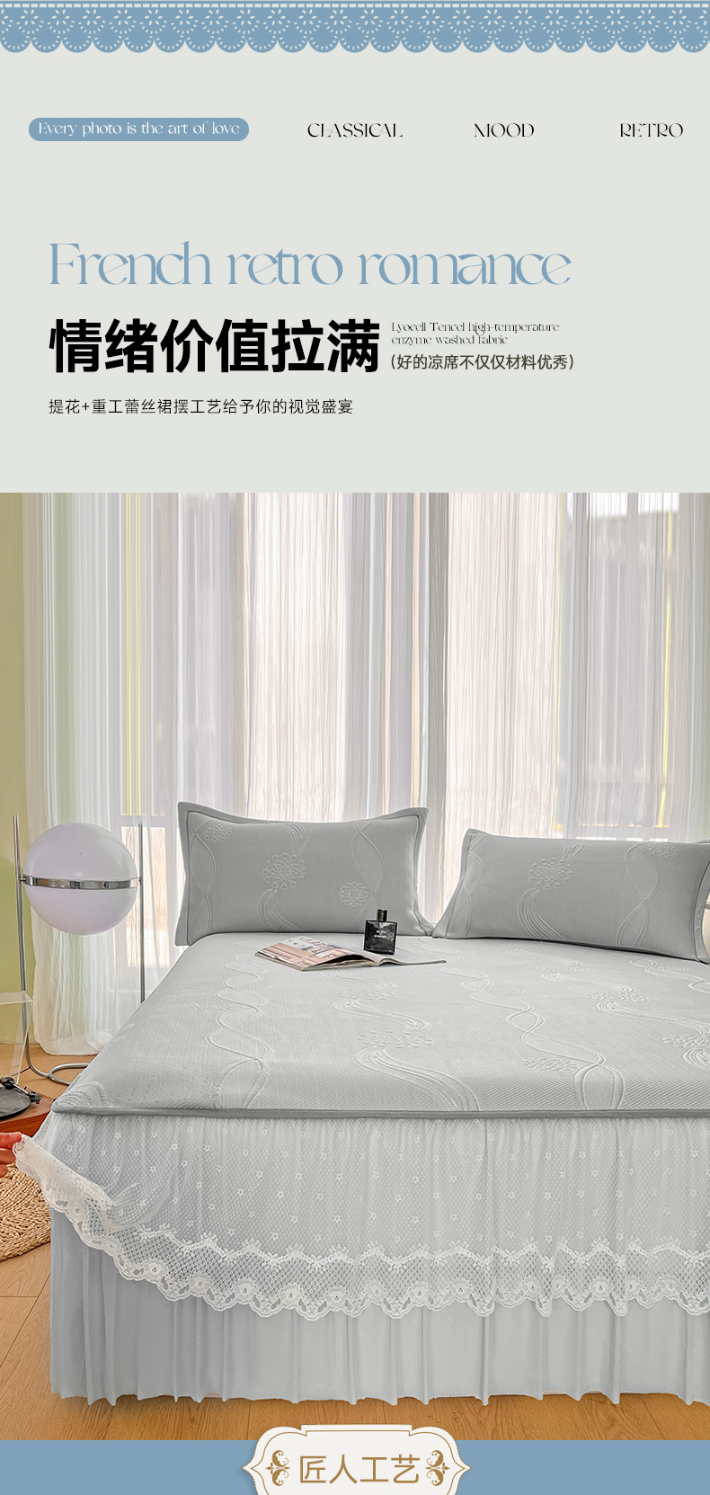 库里梦家纺 2026新款高克重复合蕾丝花边PE高分子凉席-床裙款 芳菲-灰色