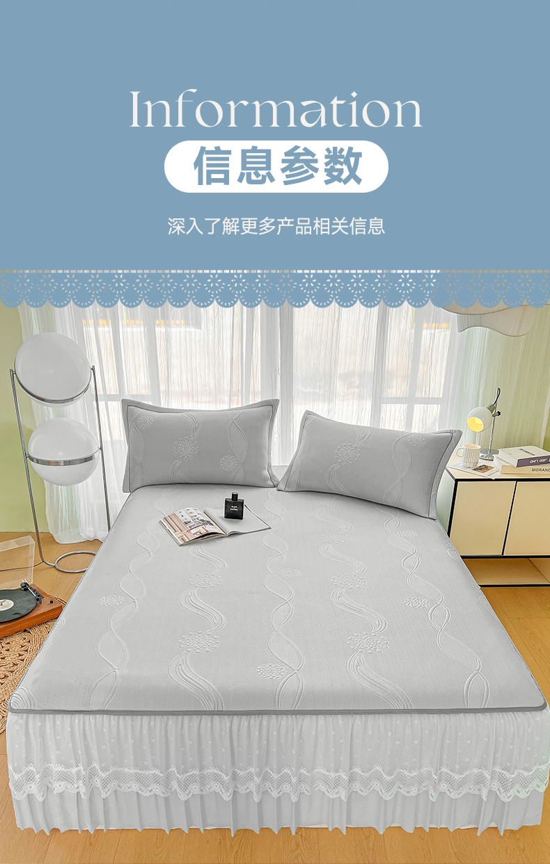 (总)库里梦家纺 2026新款高克重复合蕾丝花边PE高分子凉席-床裙款,芳菲-粉色,芳菲-灰色,芳菲-蓝色,芳菲-绿色,素瑾-粉色,素瑾-灰色,素瑾-蓝色,素瑾-绿色