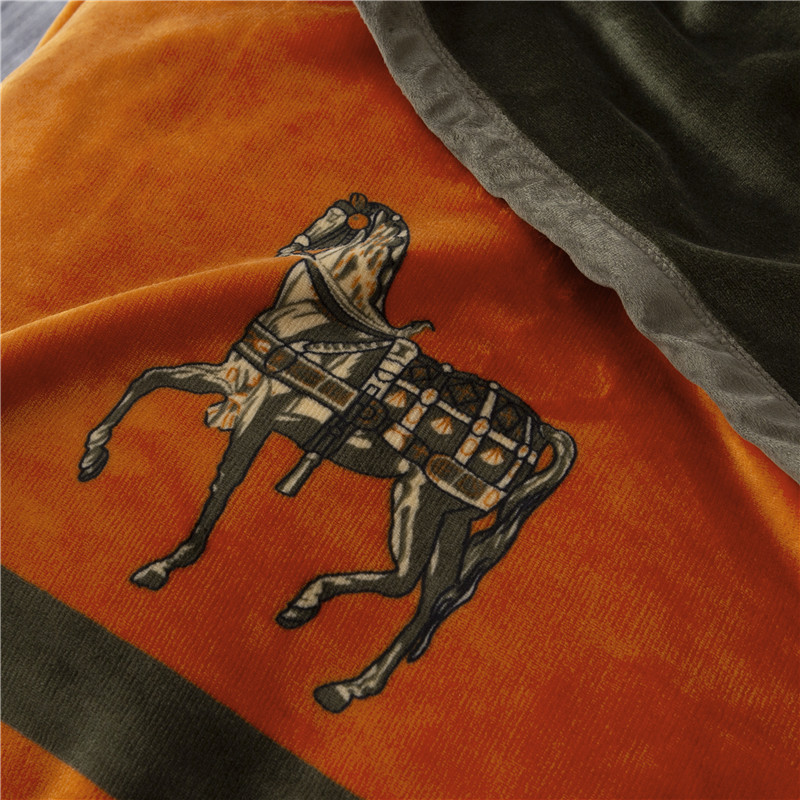 总 2023双层大版AB版云貂绒毛毯法莱绒休闲盖毯沙发空调毯,骏马,圣马罗-黄,圣马罗-兰