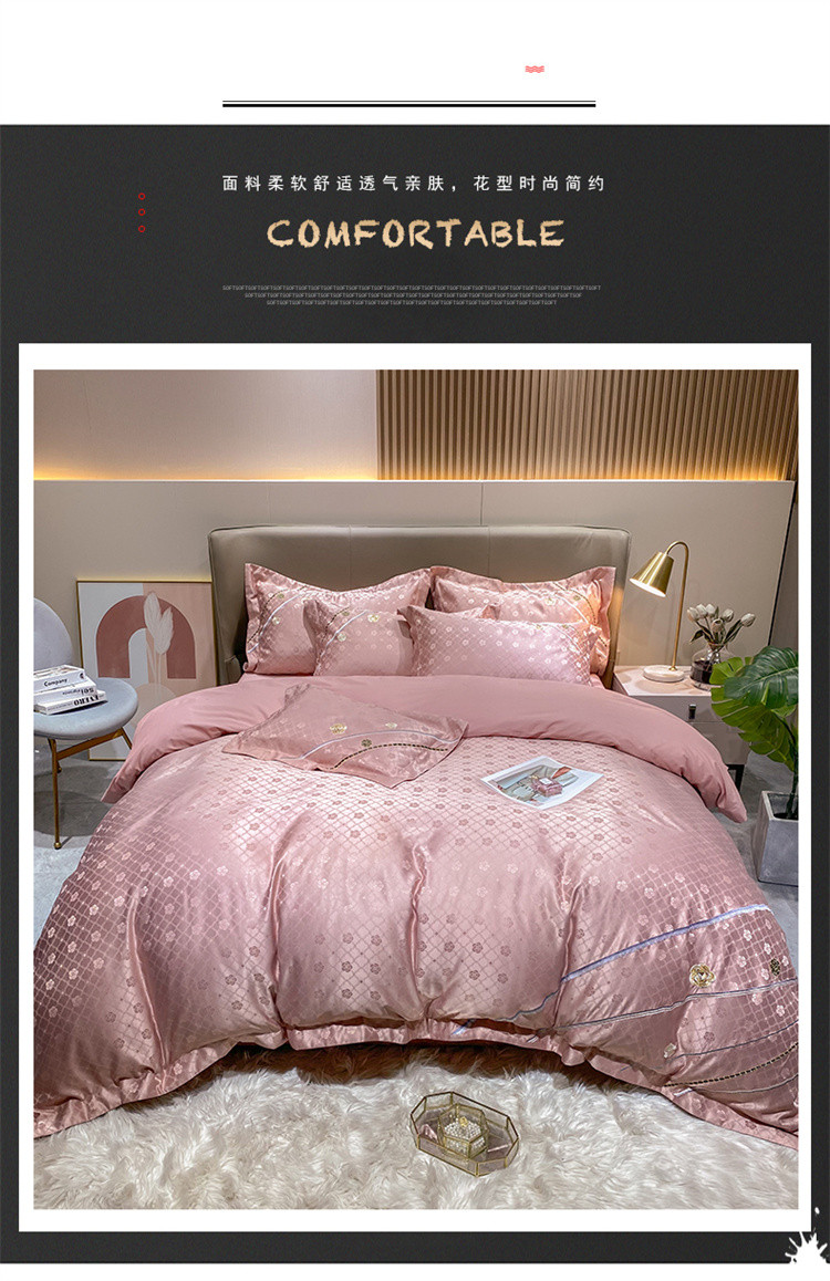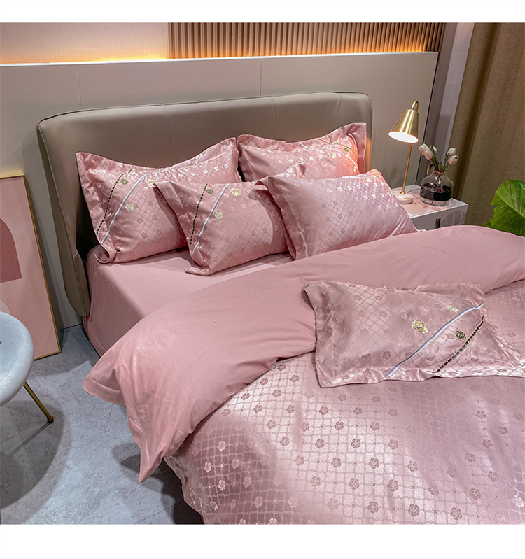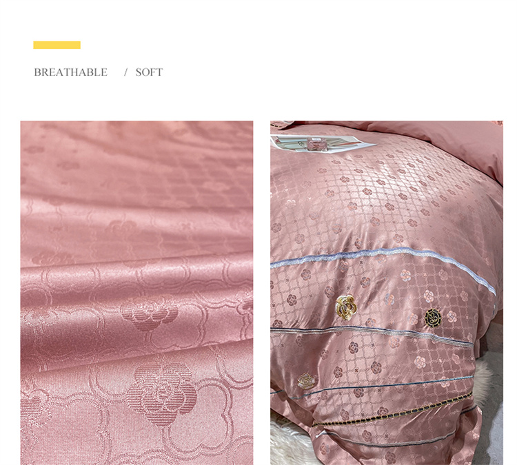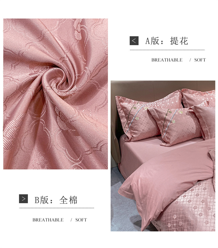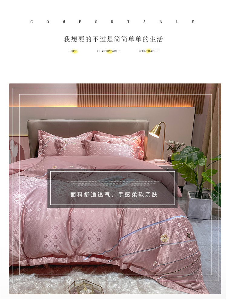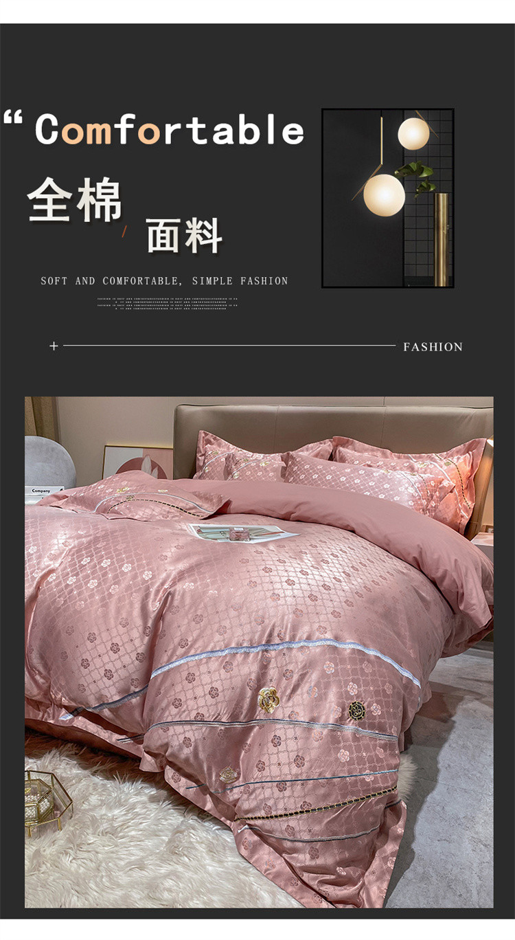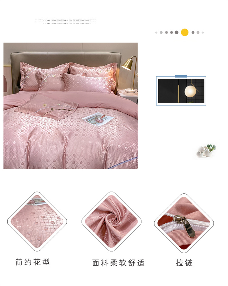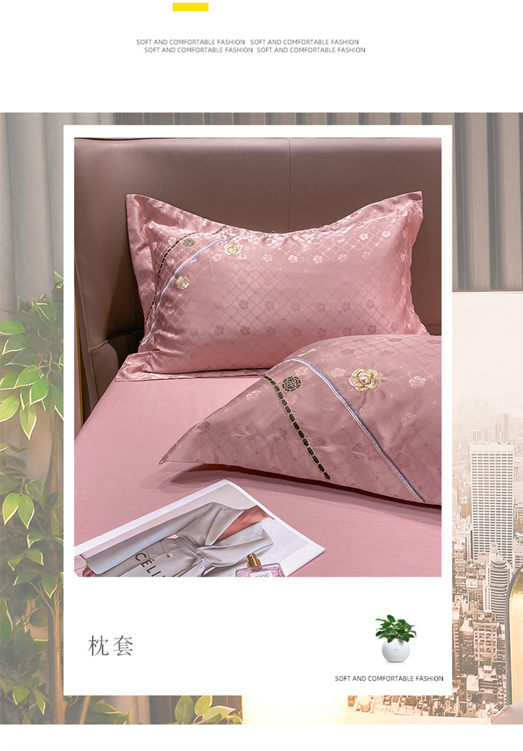 商品名称:安妮家居2021新款山茶全棉提花四件套 山茶花-粉豆沙
