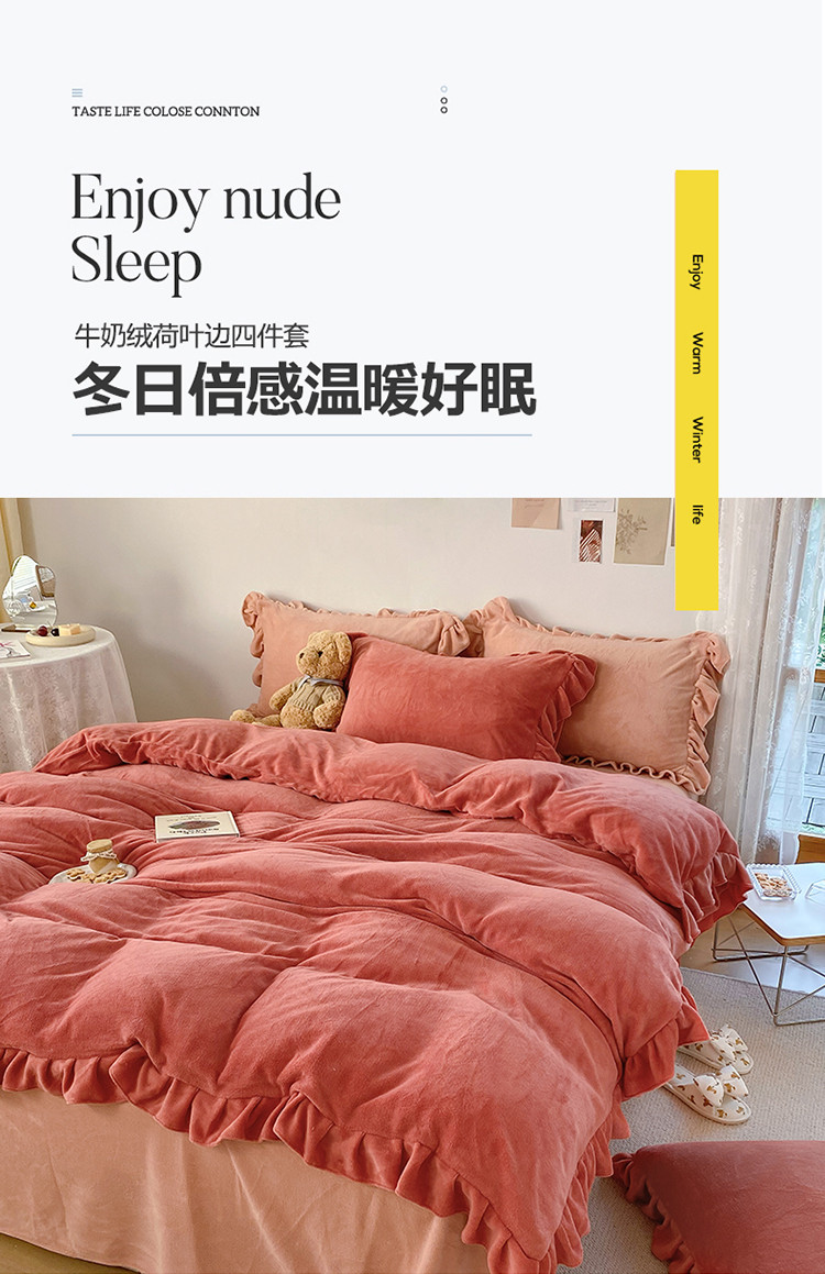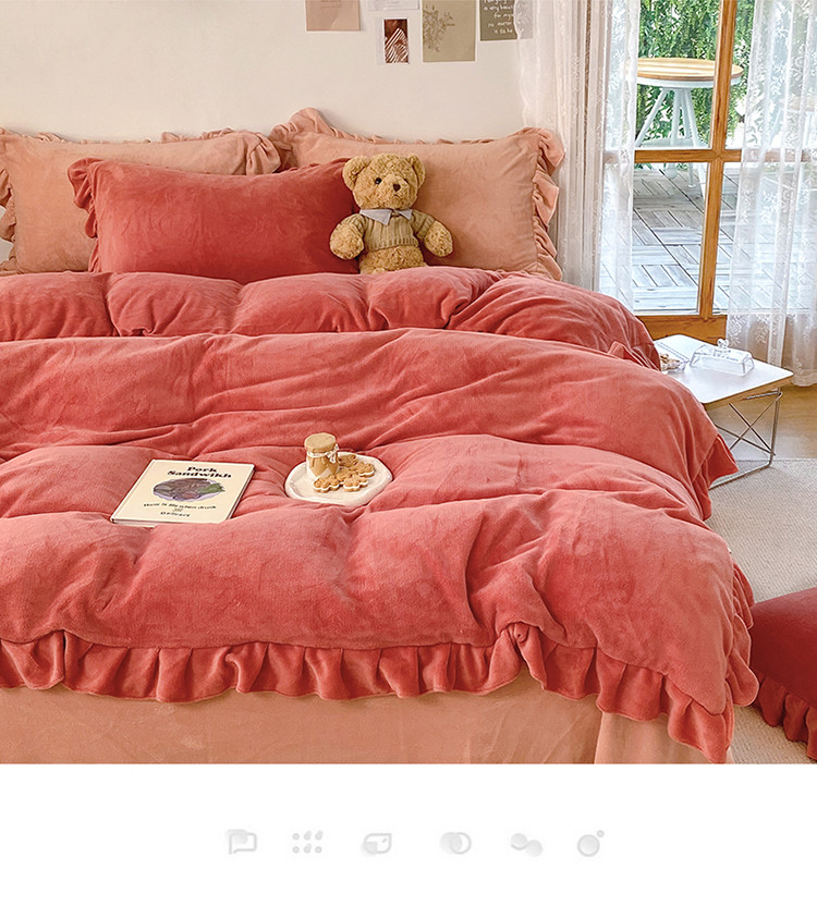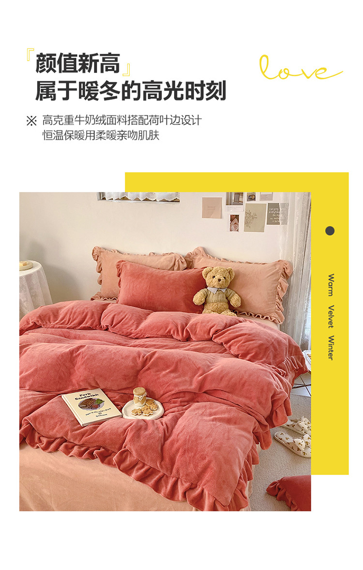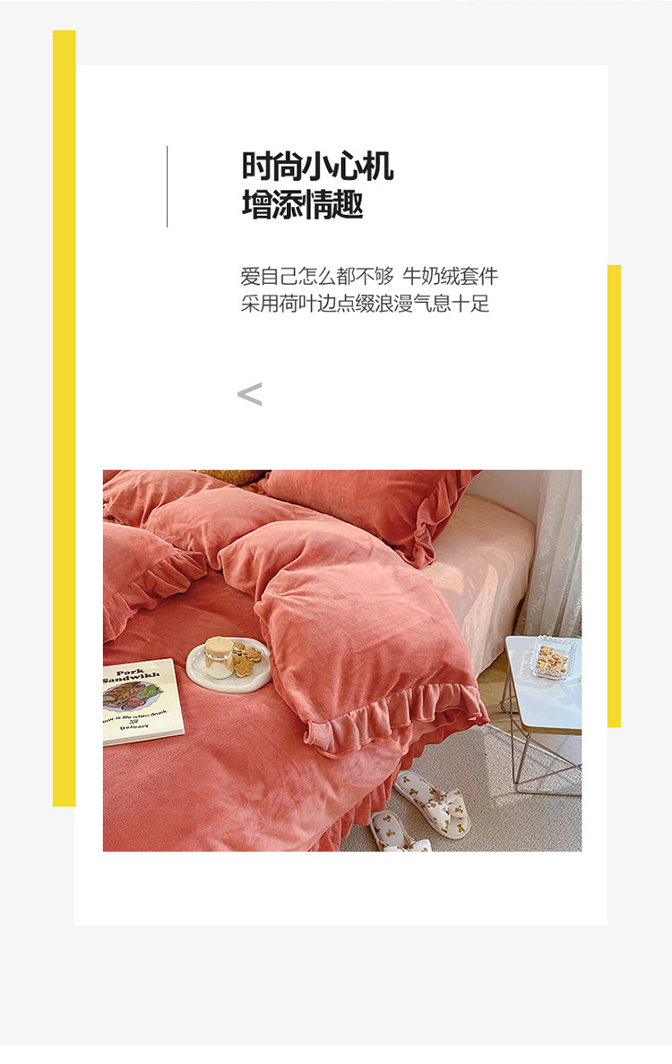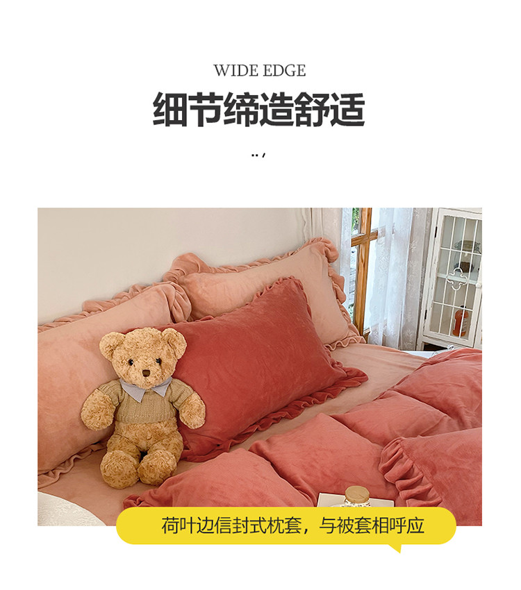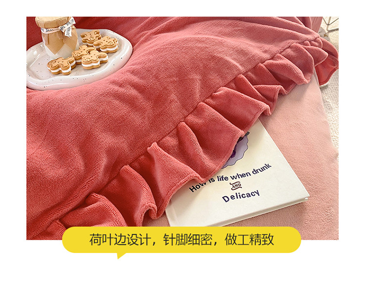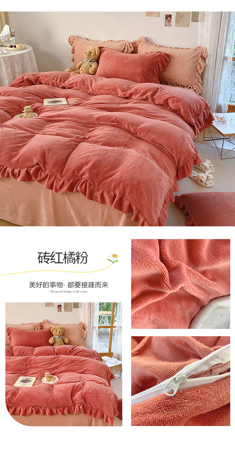 当前位置: 91家纺网 > 商品网购 > 床品套件 > 四件套 > 牛奶绒四件套 > 六巷胡同 2021新款牛奶绒ins混搭花边款四件套 砖红橘粉