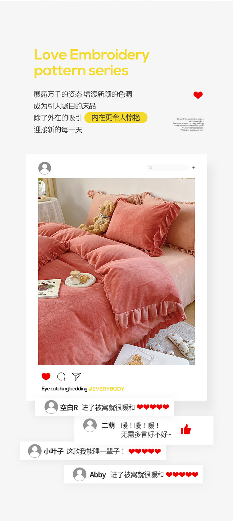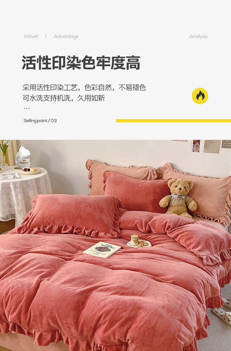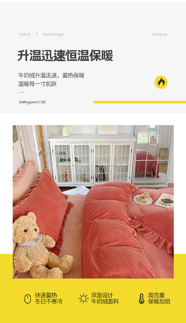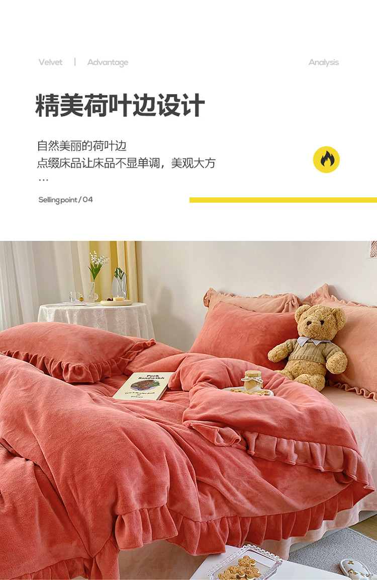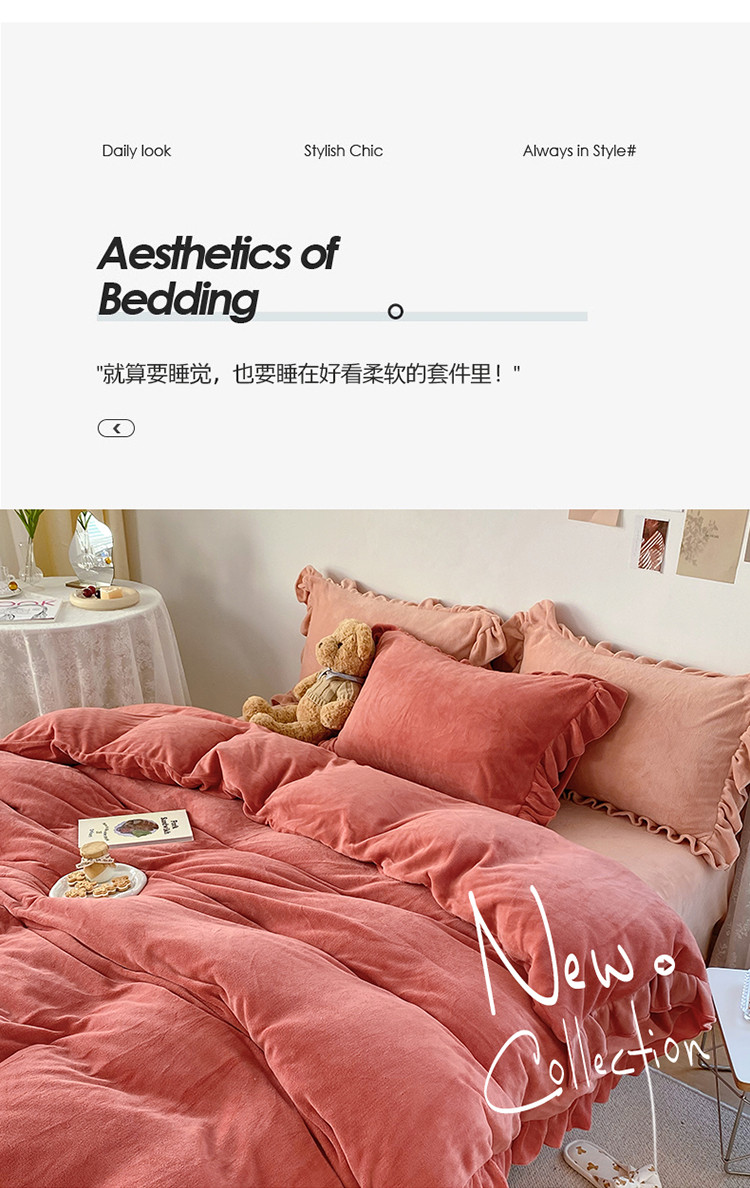 当前位置: 91家纺网 > 商品网购 > 床品套件 > 四件套 > 牛奶绒四件套 > 六巷胡同 2021新款牛奶绒ins混搭花边款四件套 砖红橘粉