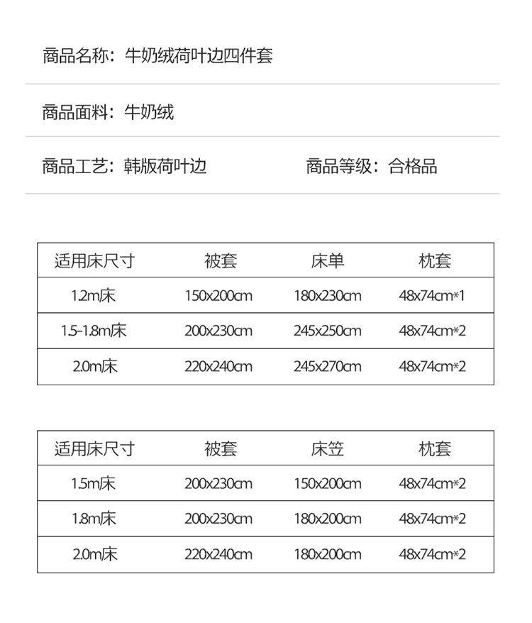 1.8m床笠款四件套 | ¥150.00 |