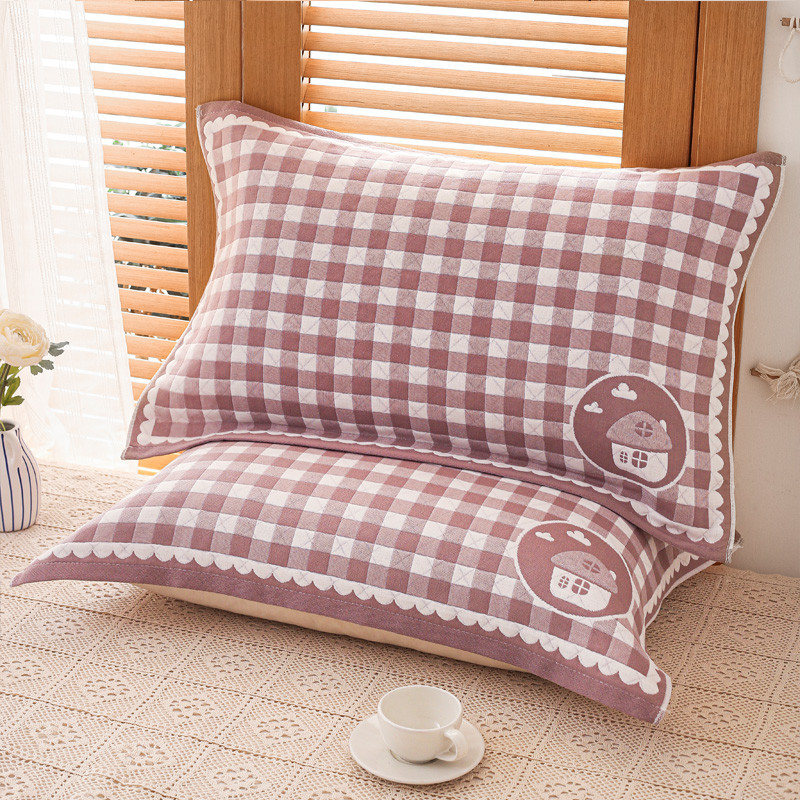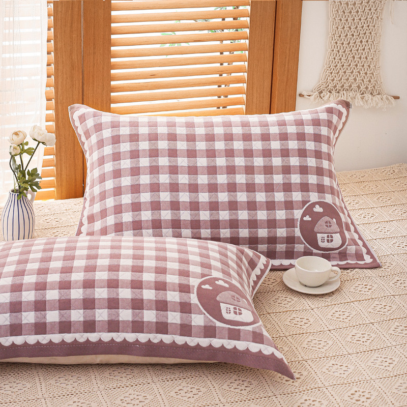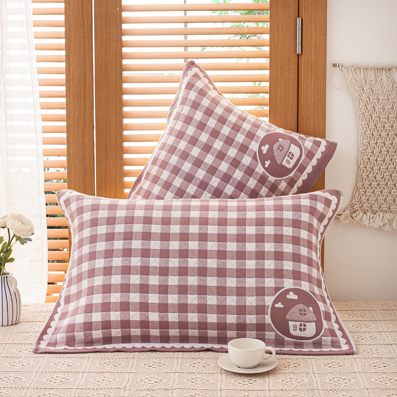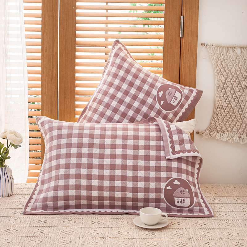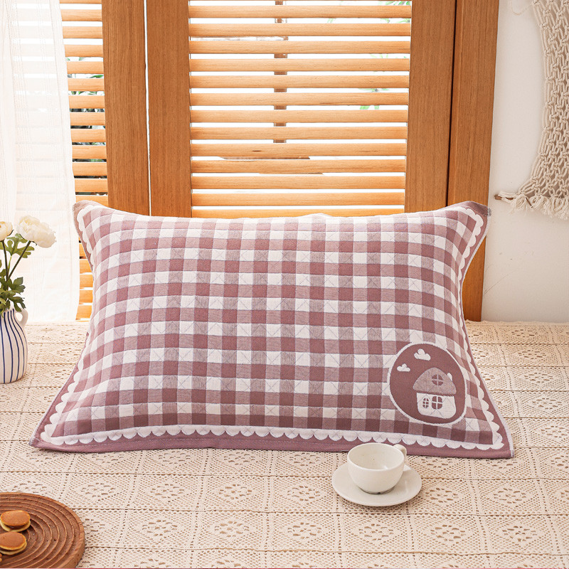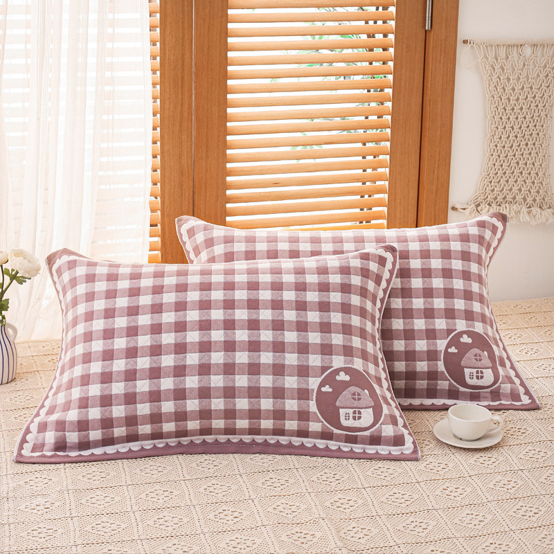 朴尔 2022新款热销全棉加厚三层纱布枕巾(一对) 小房子驼(52*78)