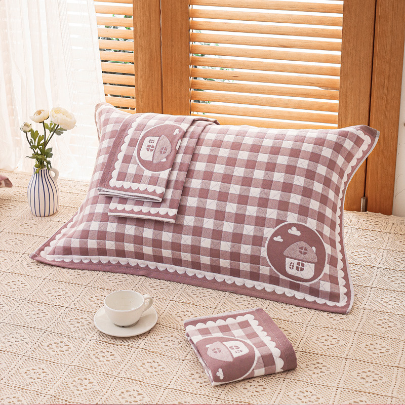 • 91家纺网 家纺一手货源 找家纺 朴尔 2022新款热销全棉加厚三层纱布枕巾(一对) 小房子驼(52*78)