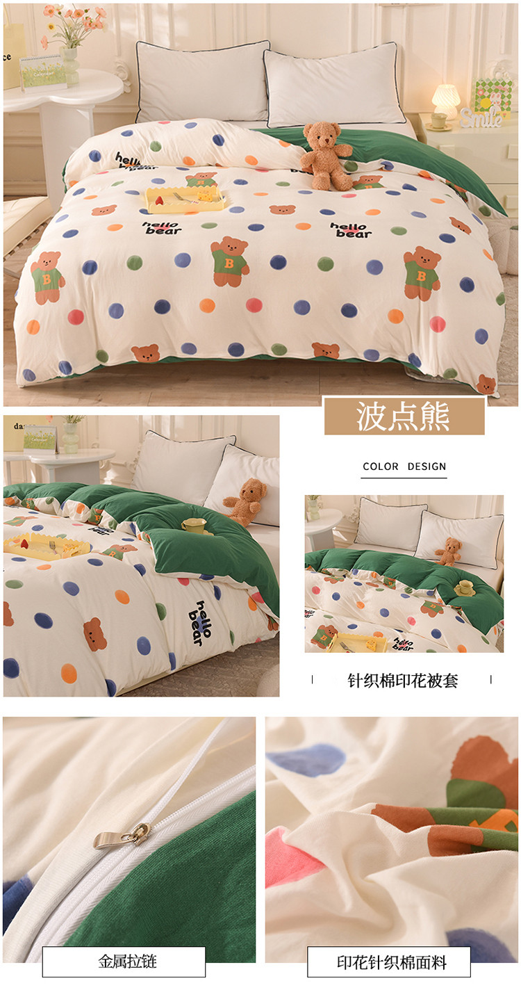 甜之梦 2025新款针织棉印花单品被套 波点熊