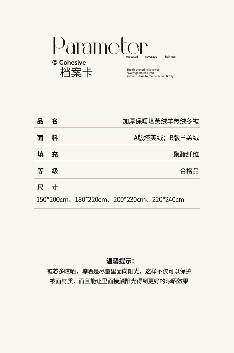 商品名称:大元 2024加厚保暖塔芙绒羊羔绒冬被 奶茶咖