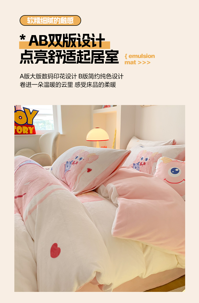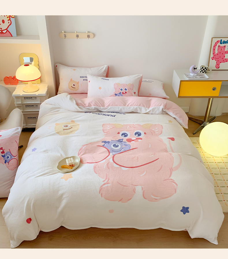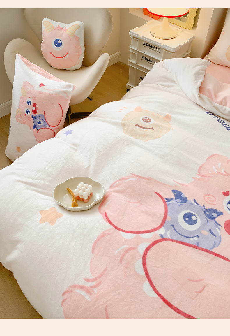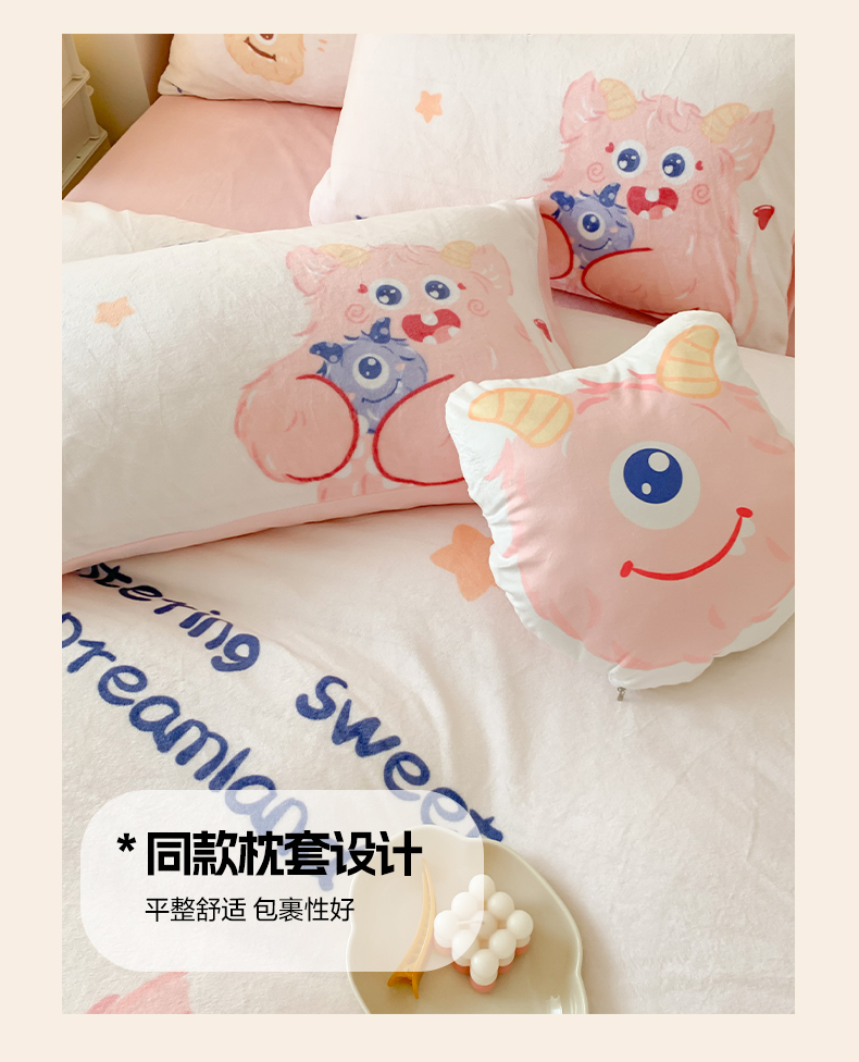 澳萝拉2023新款大版数码牛奶绒五件套配送同款小抱枕 抱抱小怪兽
