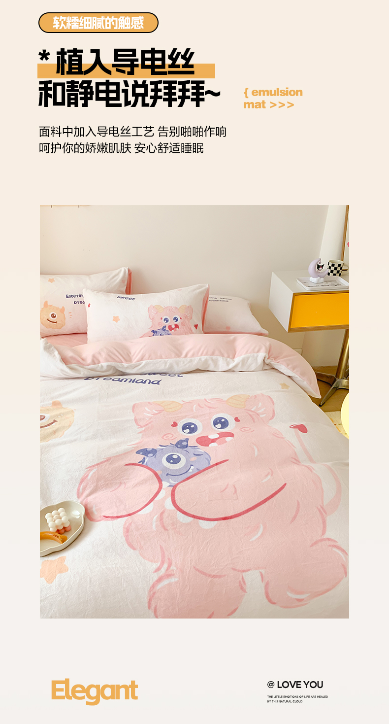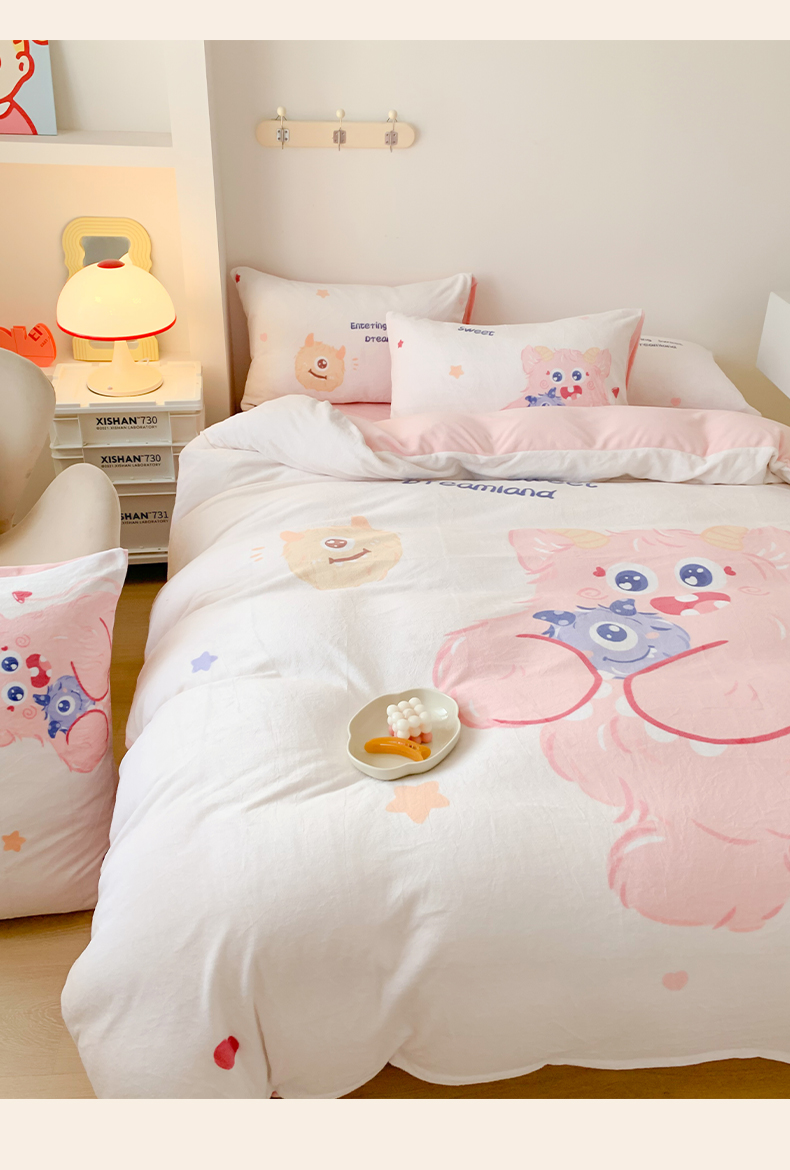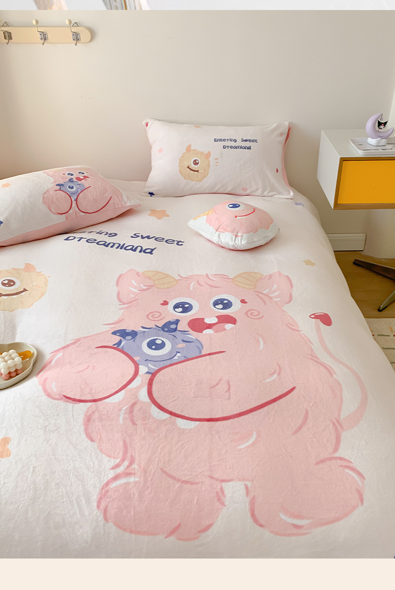 澳萝拉2023新款大版数码牛奶绒五件套配送同款小抱枕 抱抱小怪兽