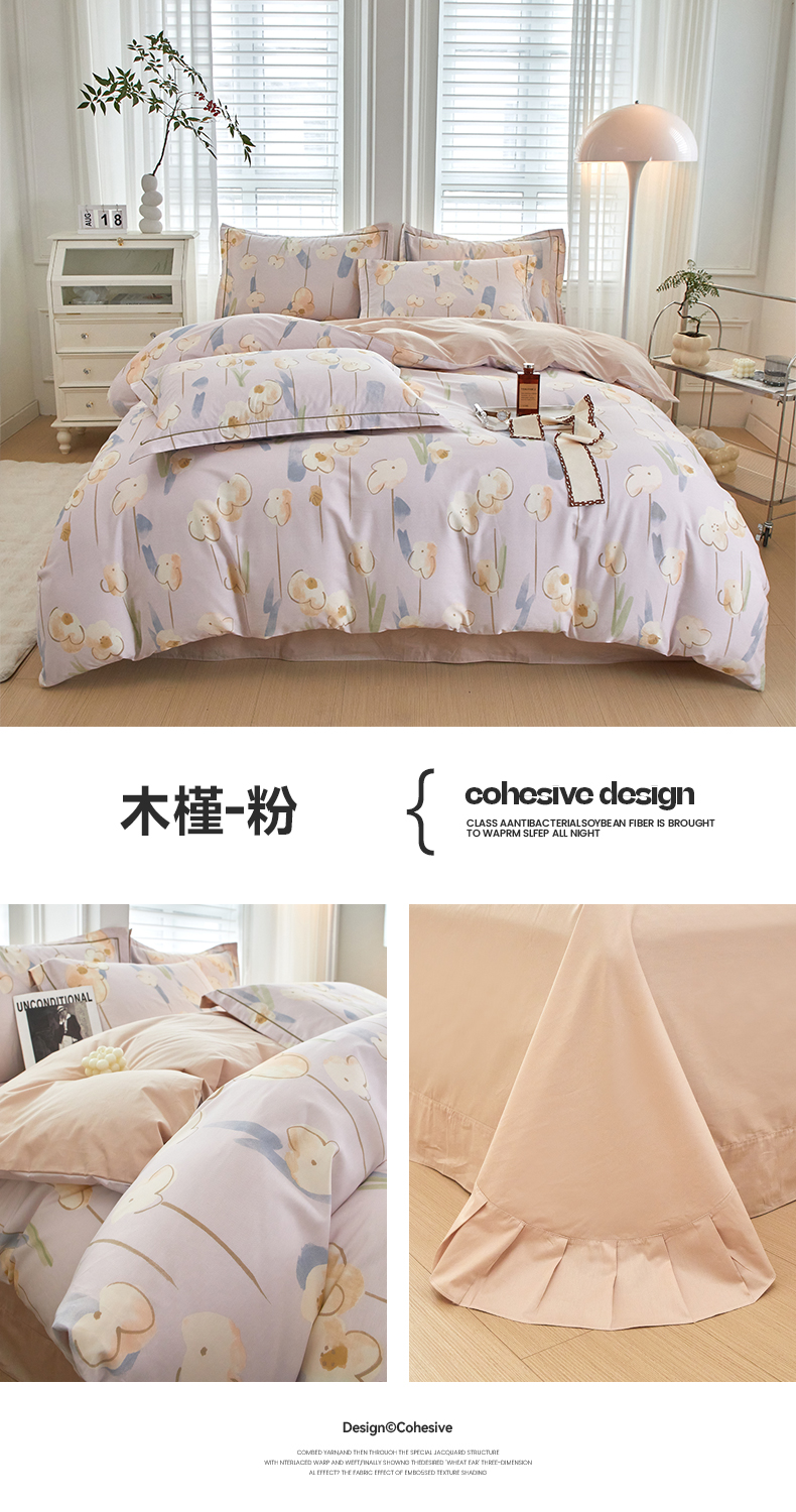 沐白家居 2024新款全棉13376全棉印花四件套 木槿-粉