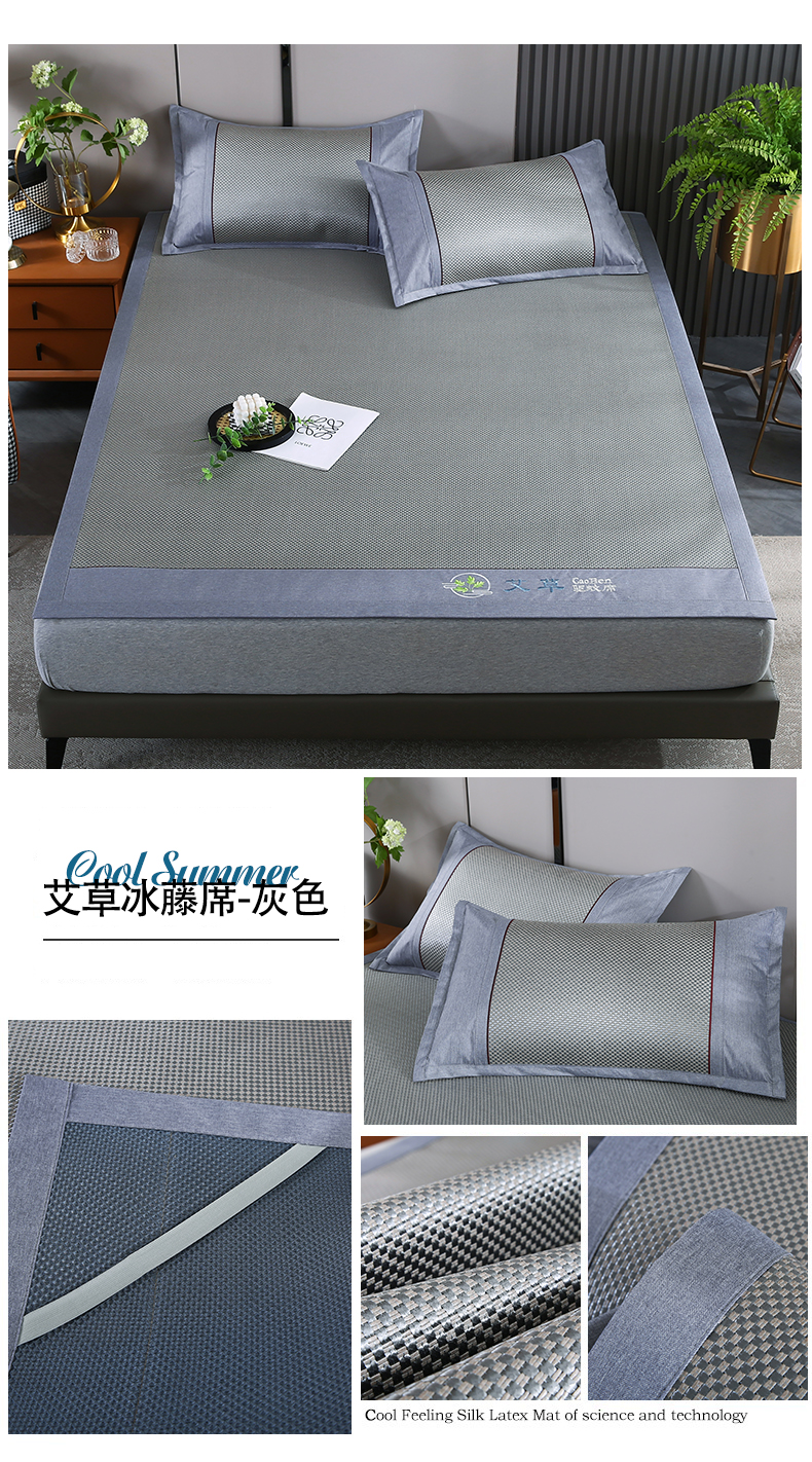 莱轩席业 2024新款A类艾草冰藤刺绣款凉席-条席款 灰色