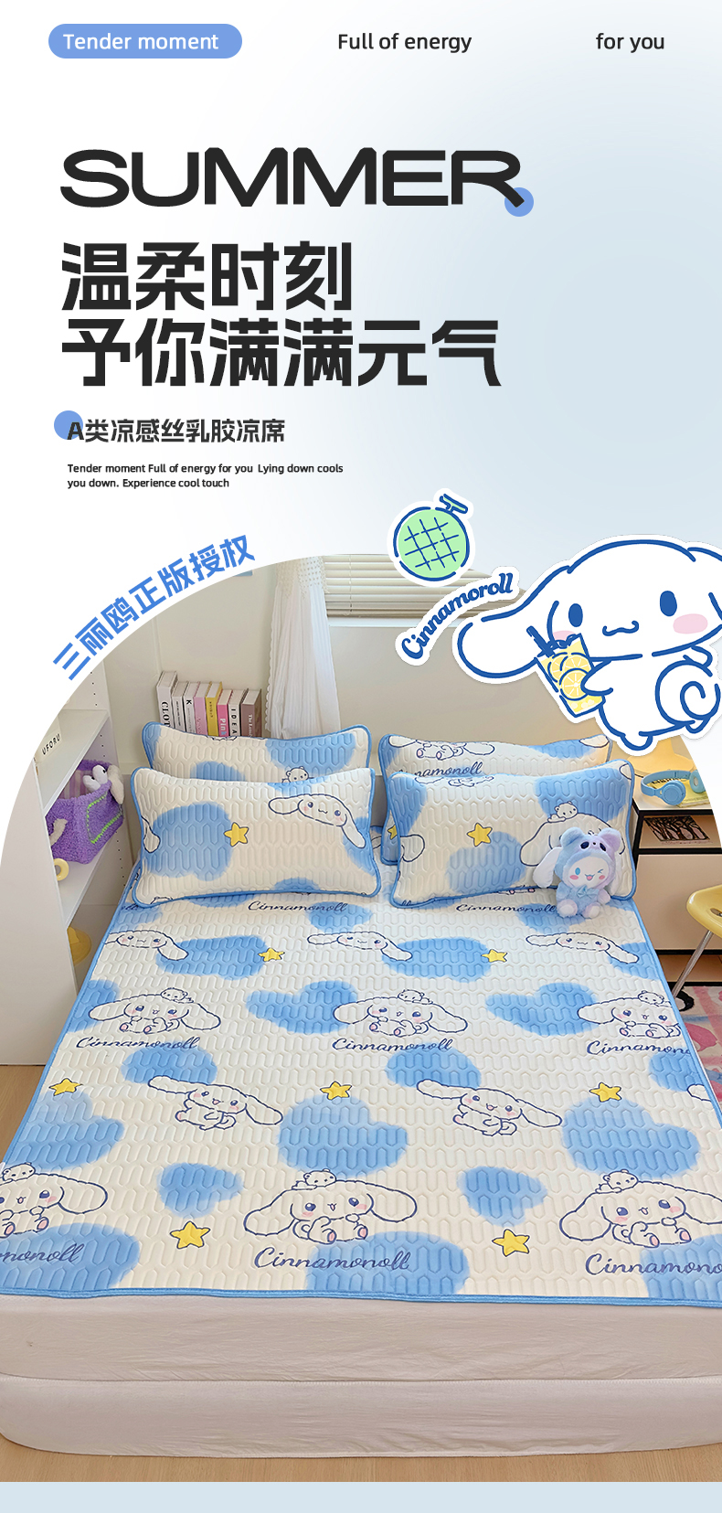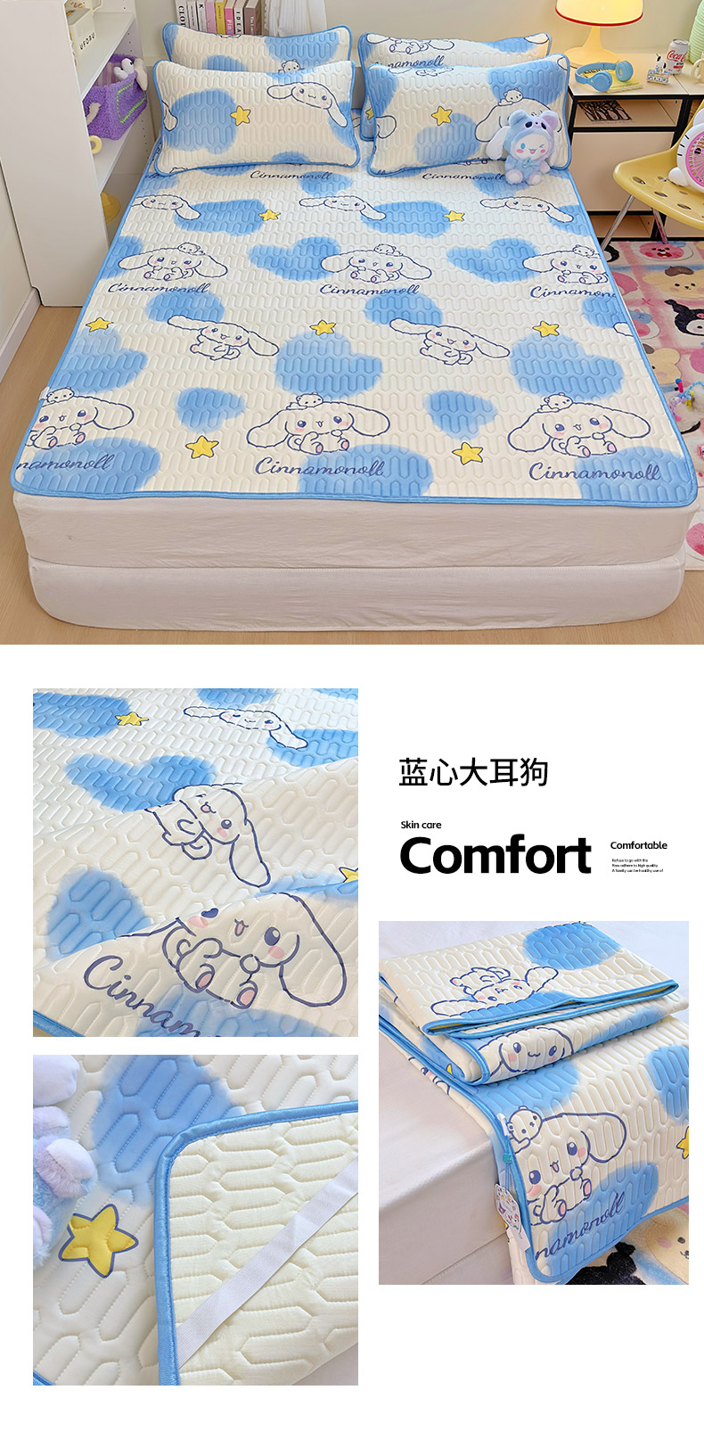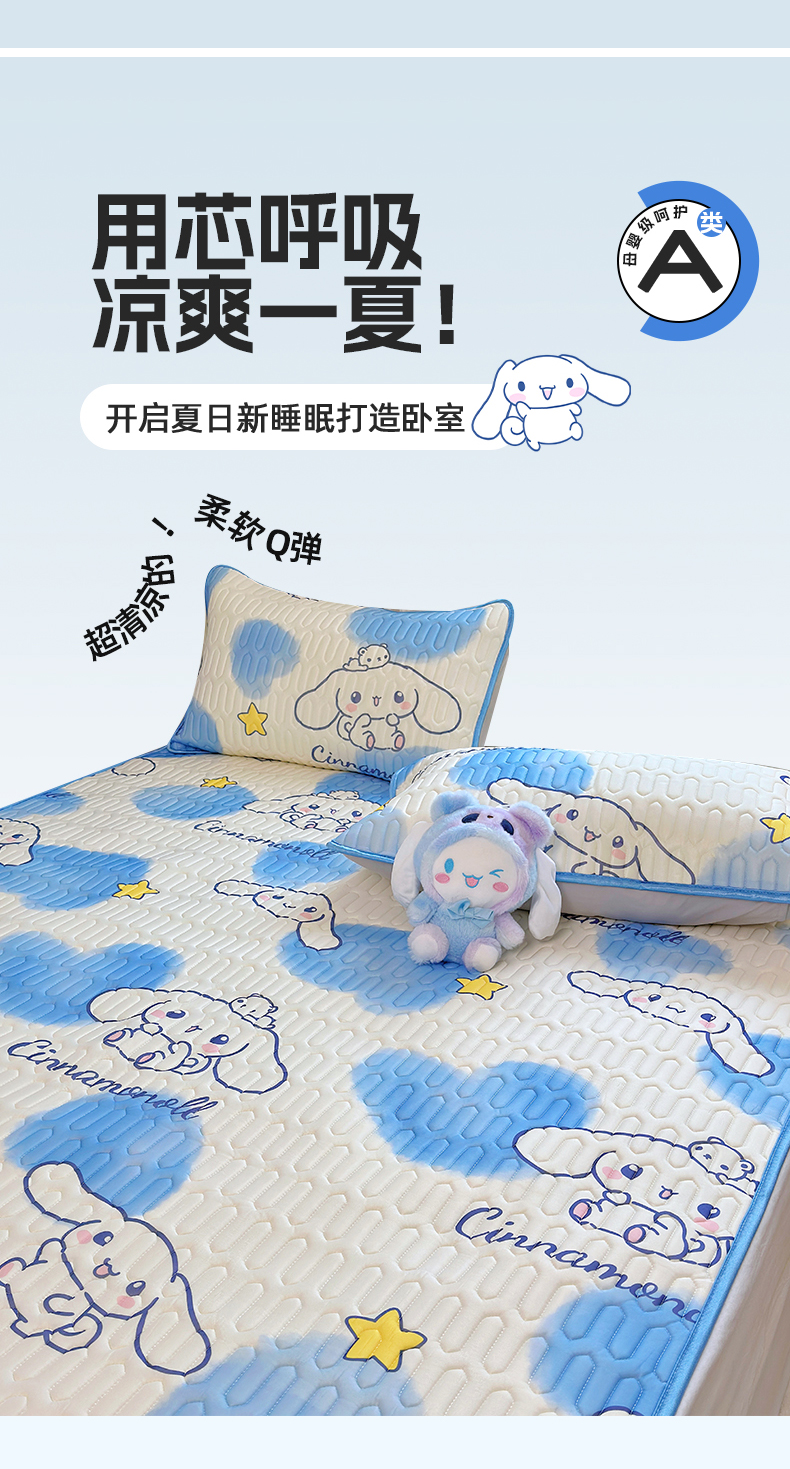 商品名称:澳萝拉 2024新款A类凉感丝三丽鸥乳胶凉席 蓝心大耳狗