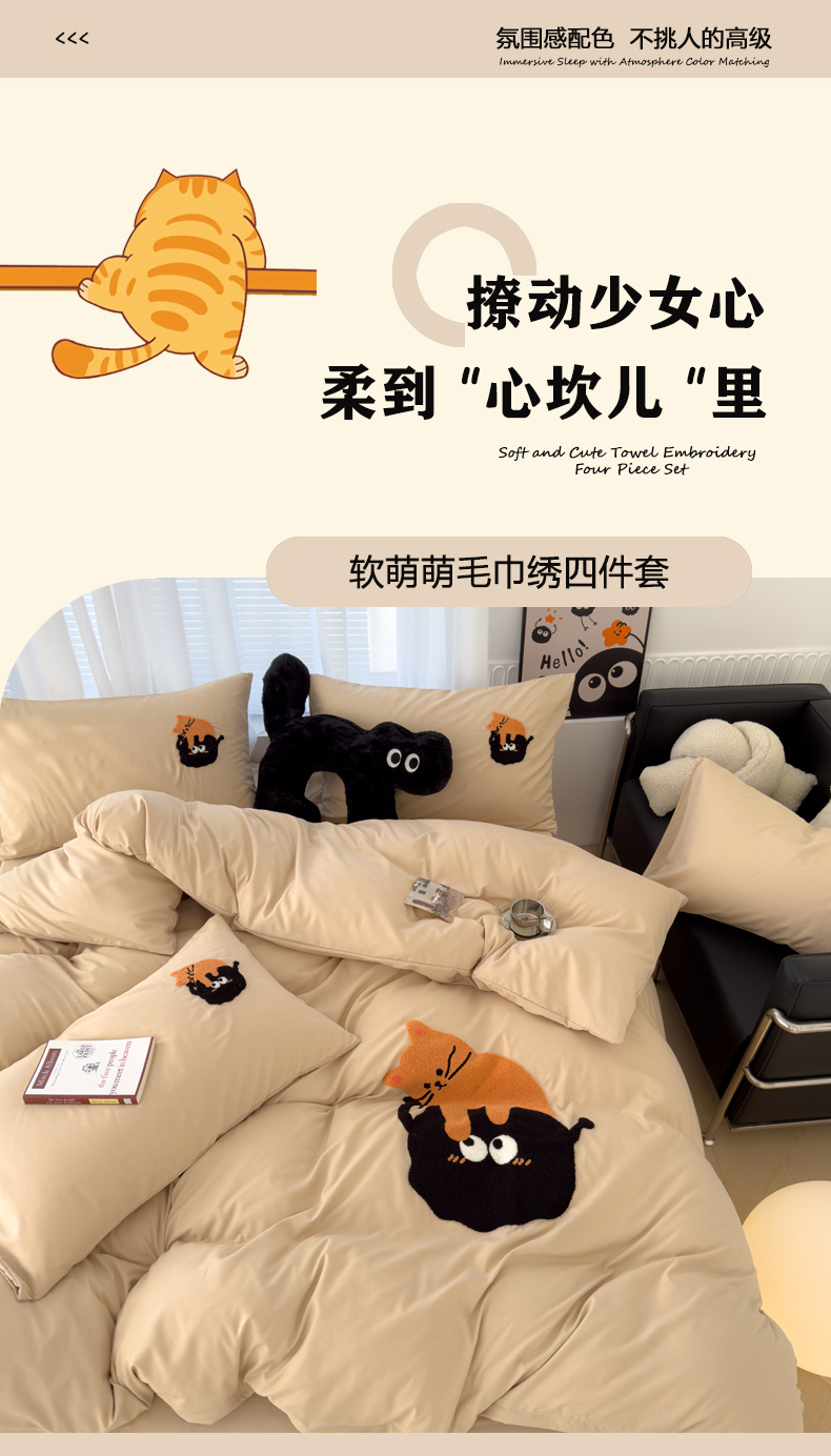 当前位置: 91家纺网 > 商品网购 > 床品套件 > 四件套 > 毛巾绣四件套 > 曼谷家纺 年新款熊猫毛巾绣四件套柔软磨毛床上用品水洗棉套件 小猫-奶茶