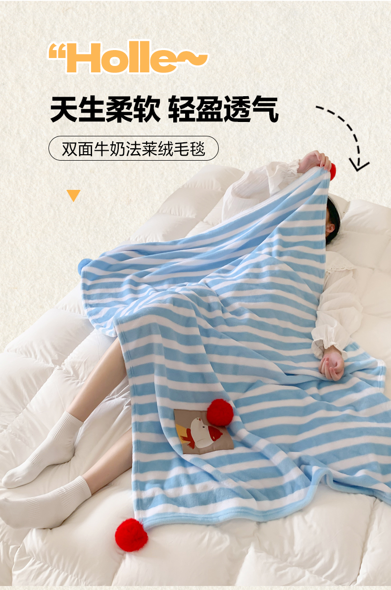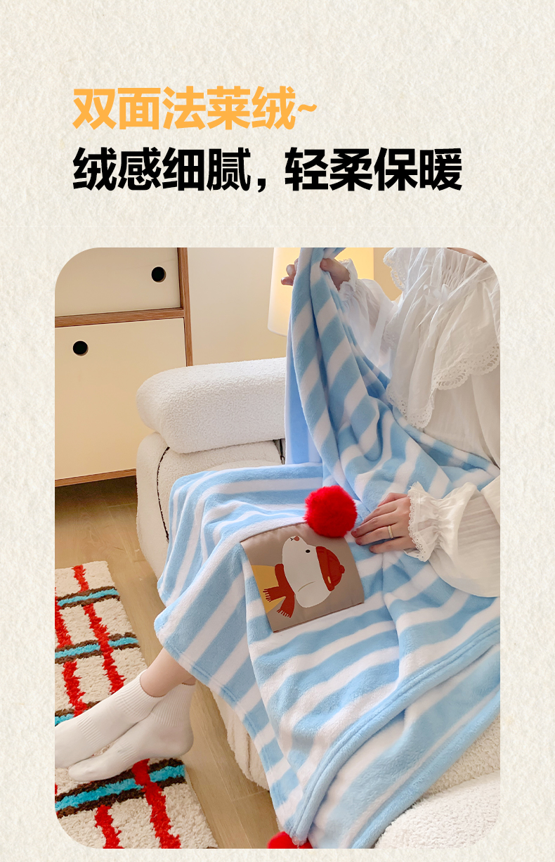 澳萝拉 2024新款卡通小清新双面牛奶绒法莱绒毛毯四季盖毯 哈喽酷狗