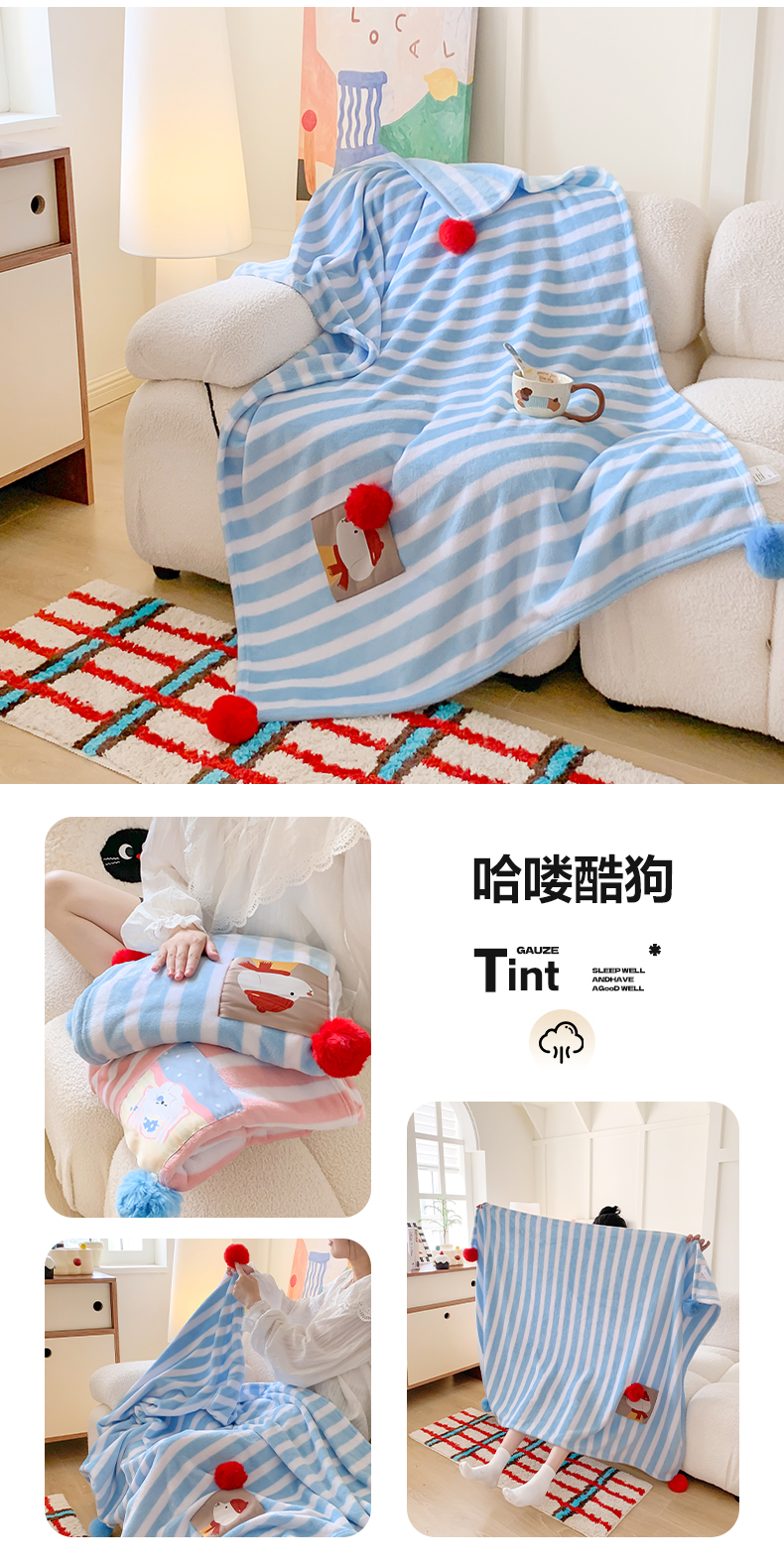 商品名称:澳萝拉 2024新款卡通小清新双面牛奶绒法莱绒毛毯四季盖毯 哈喽酷狗