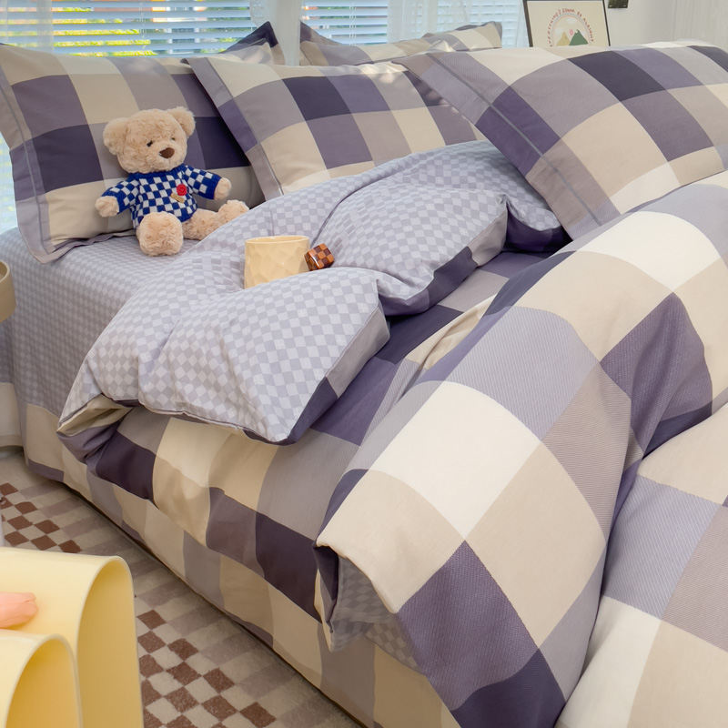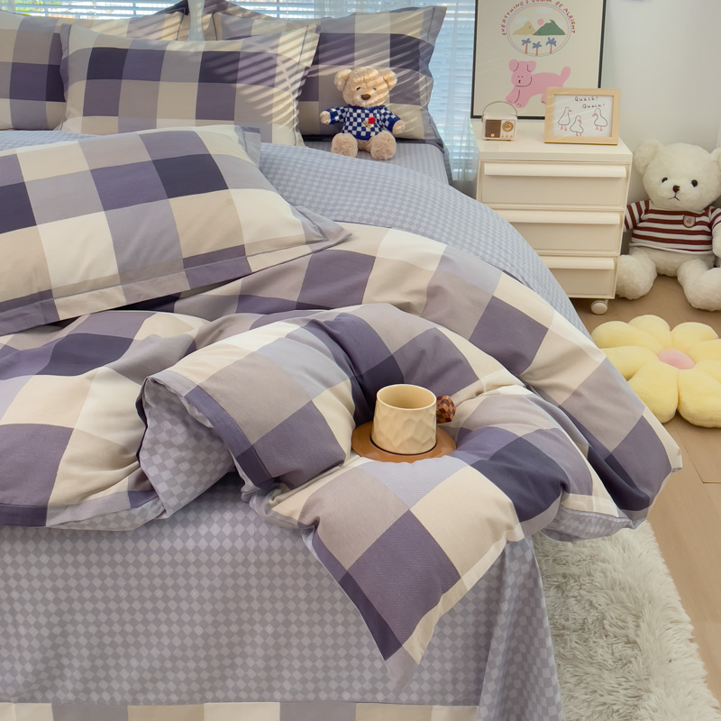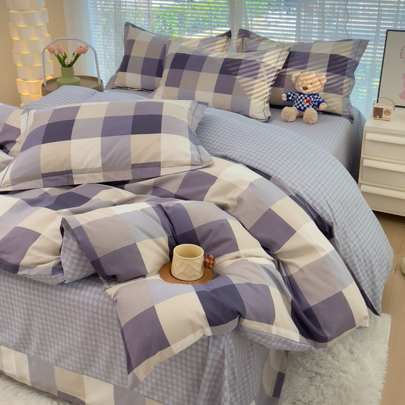 铭博家纺 新款直播爆款网红全棉四件套13070印花吊边一字绣纯棉四件套工艺款 伯克里