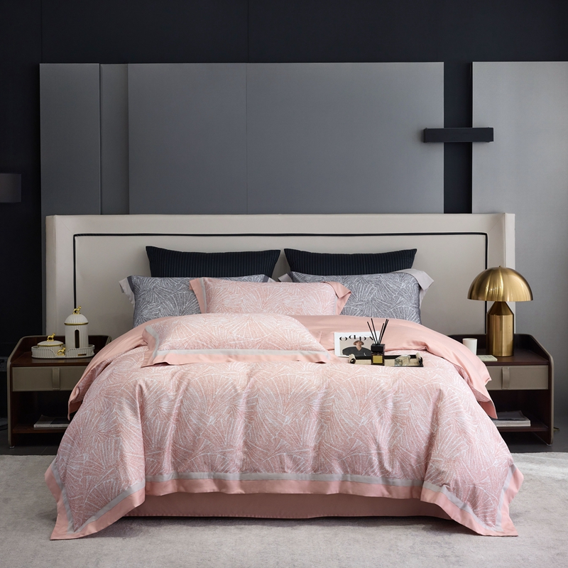 (总)榻尚家居 2023新款纯棉贡缎提花四件套(会员-10),缤兰,烟粉