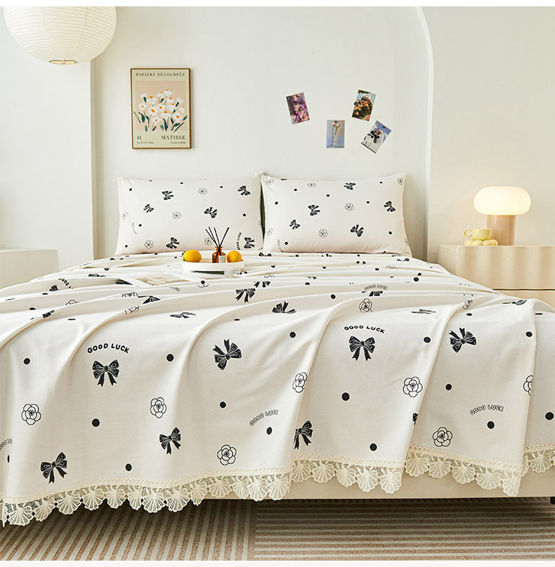 义博家纺 2025新款纯棉老粗布花边款单床单 月影疏疏