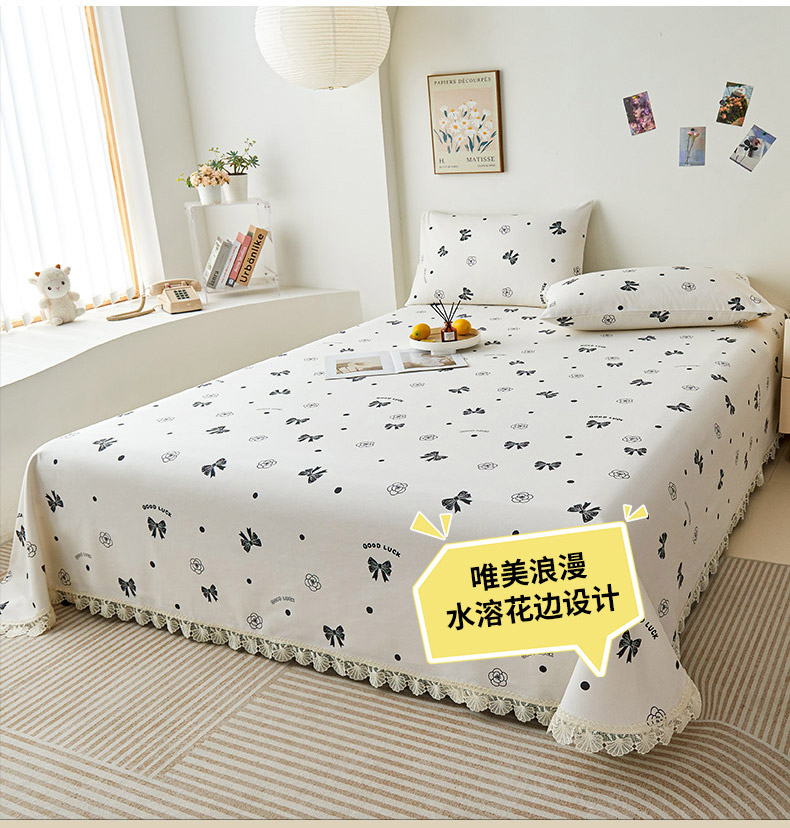 商品名称:义博家纺 2025新款纯棉老粗布花边款单床单 月影疏疏
