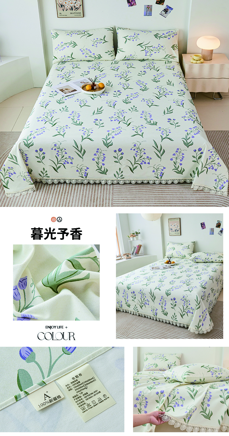 (总)义博家纺 2025新款纯棉老粗布花边款单床单,蝴蝶飞飞,馥郁,花都丽影,花影绮梦,锦绣团簇,暮光予香,恬静花园,细数花语,霞染层云,向阳花开,邂逅山茶,星辉绽放,迎春花,月汐幻梦,月影疏疏