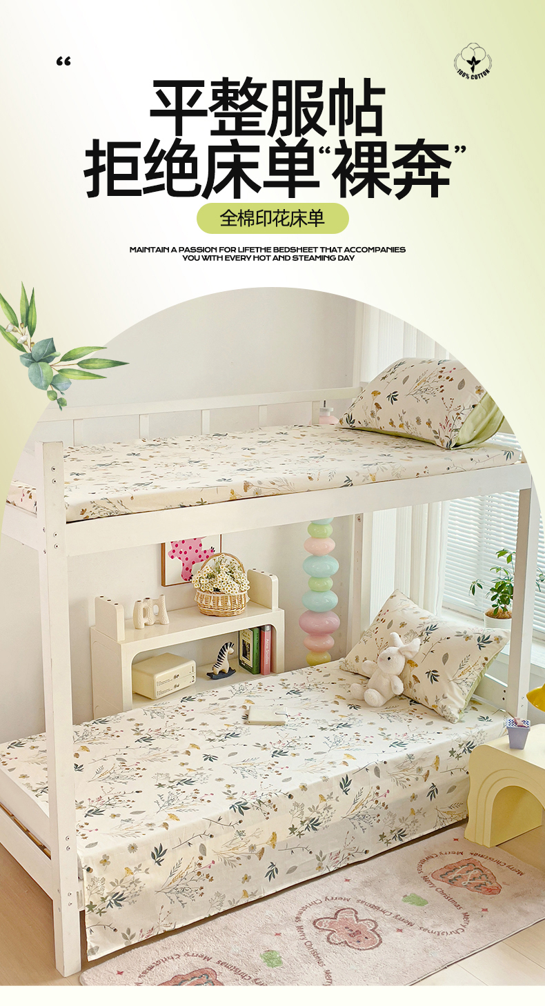• 91家纺网 家纺一手货源 找家纺 名兮家居 2025新款全棉纯棉13372学生床上下铺单床单 东篱