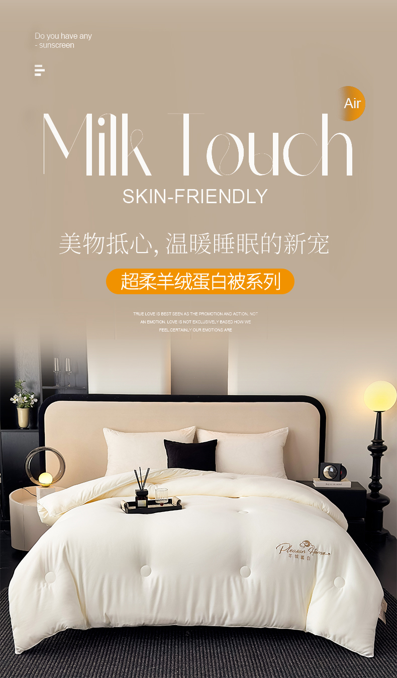 • 91家纺网 家纺一手货源 找家纺 蓝雀翎 2025新款刺绣羊绒蛋白锁温被被子被芯 极光白