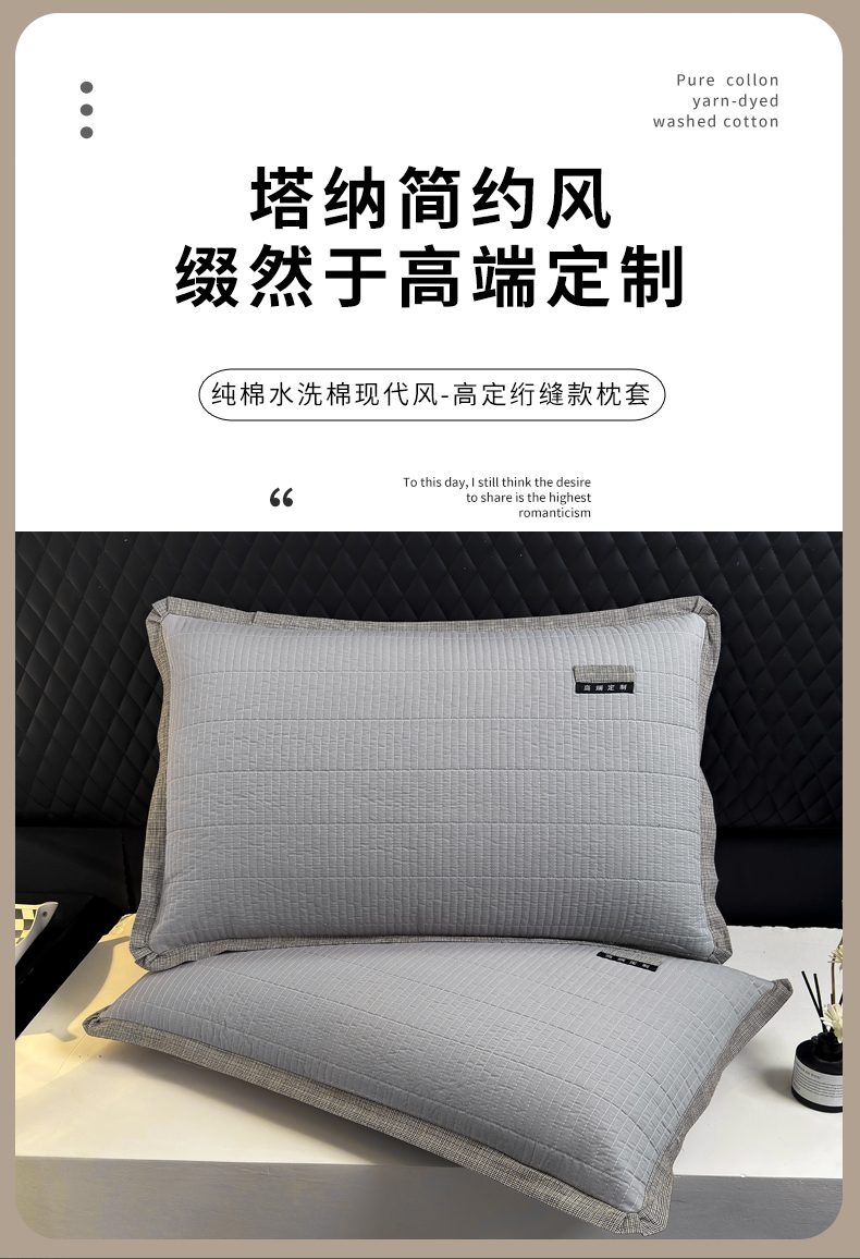 • 91家纺网 家纺一手货源 找家纺 呦呦南宋 纯棉绗缝48x74cm水洗棉枕套中层夹棉单品拉链款一对装全棉高端定制款平边枕套 平边咖