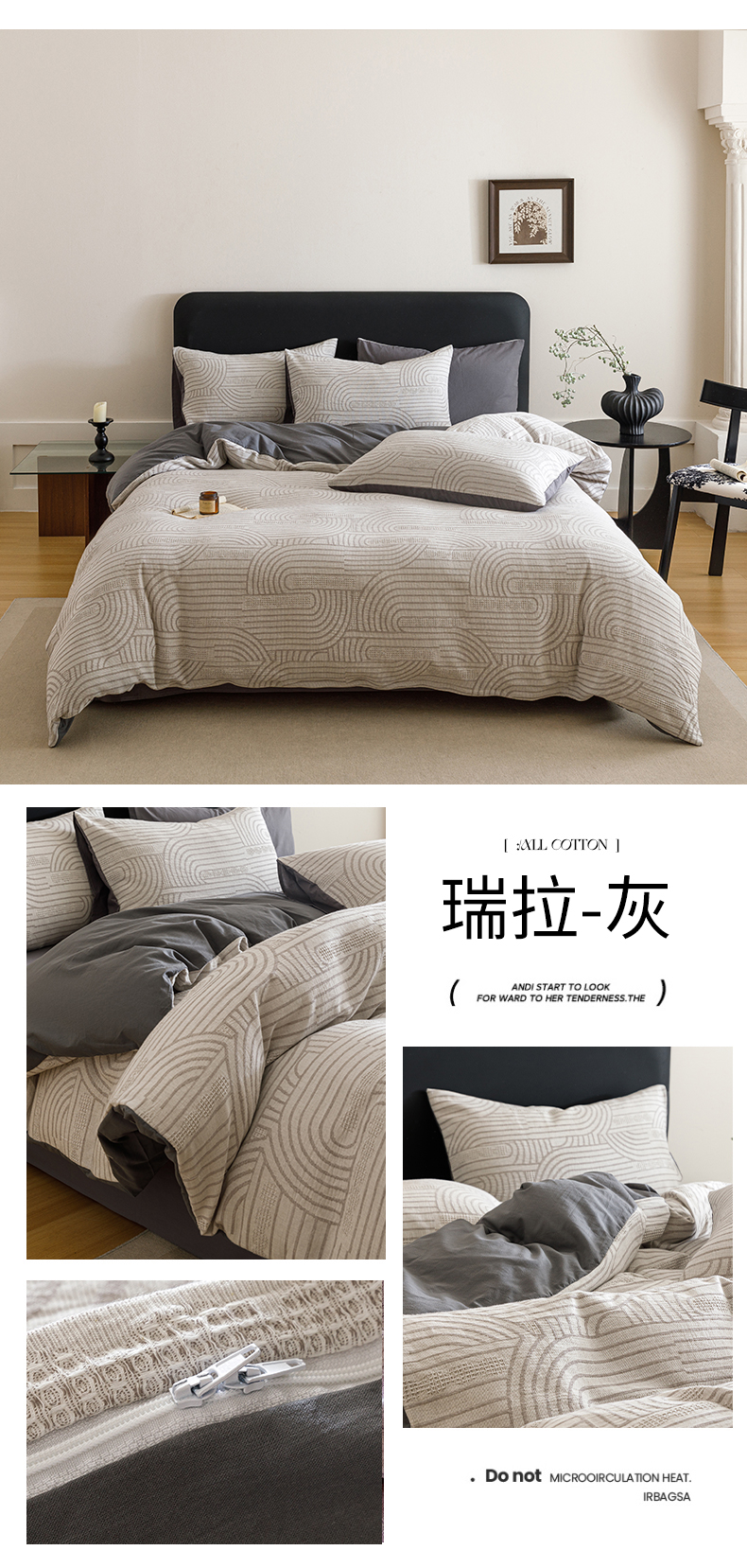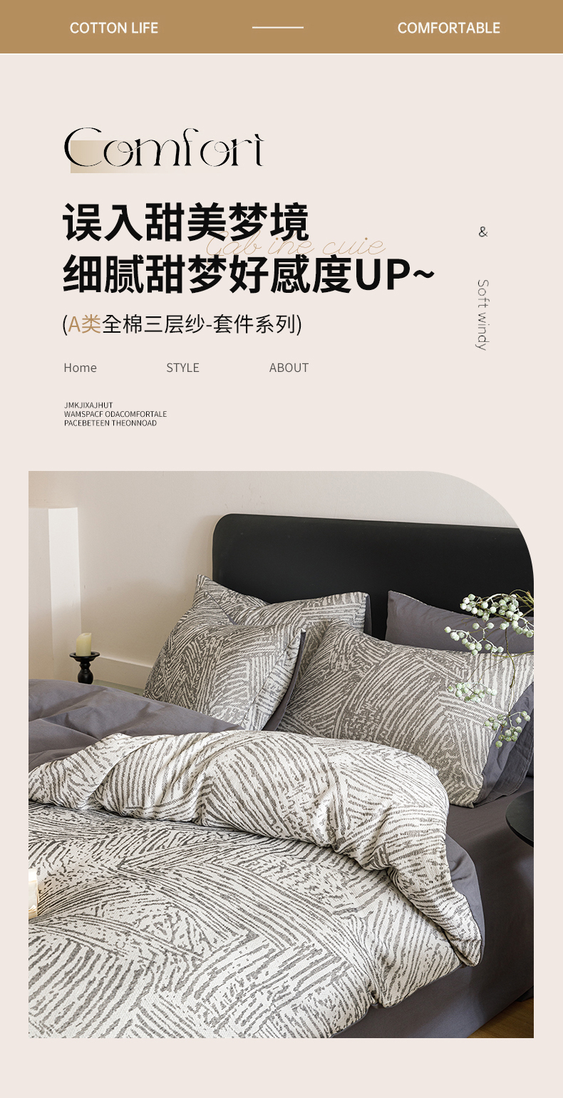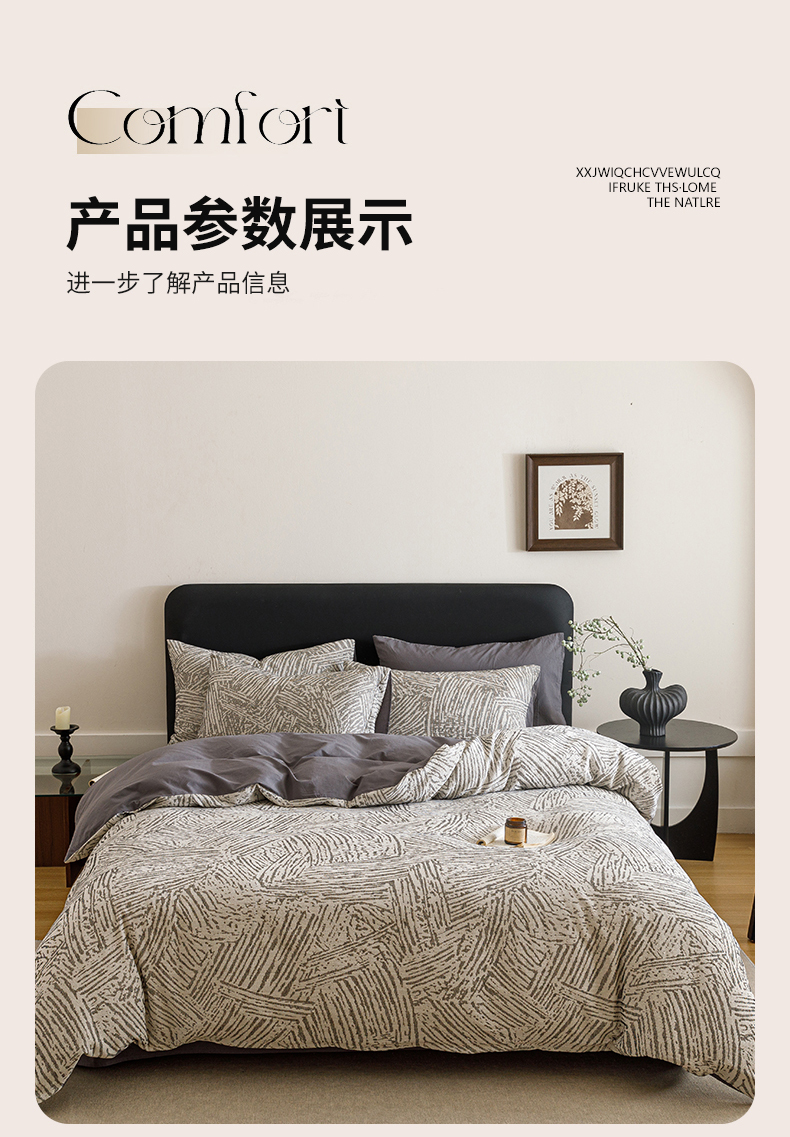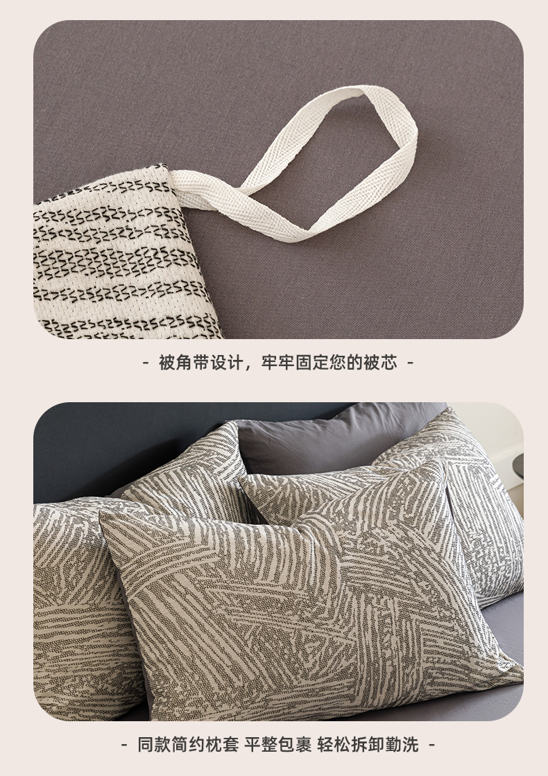 商品名称:春皖家纺 2026新款A类全棉双层纱AB版简约四件套 棱序