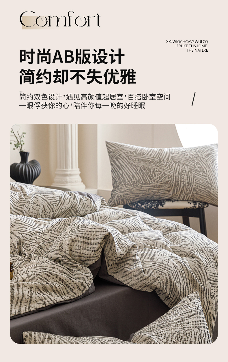 春皖家纺 2026新款A类全棉双层纱AB版简约四件套 棱序