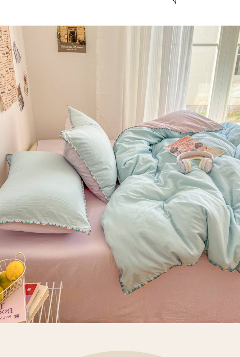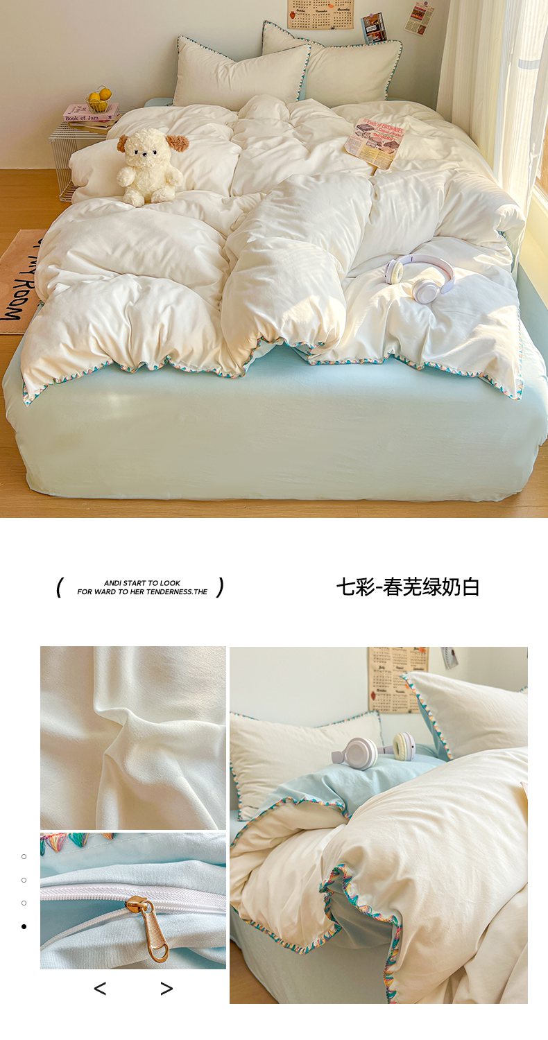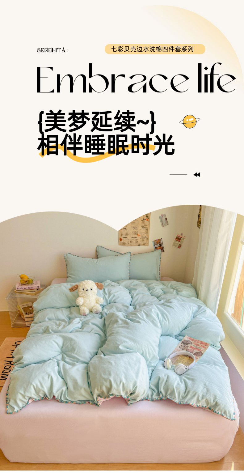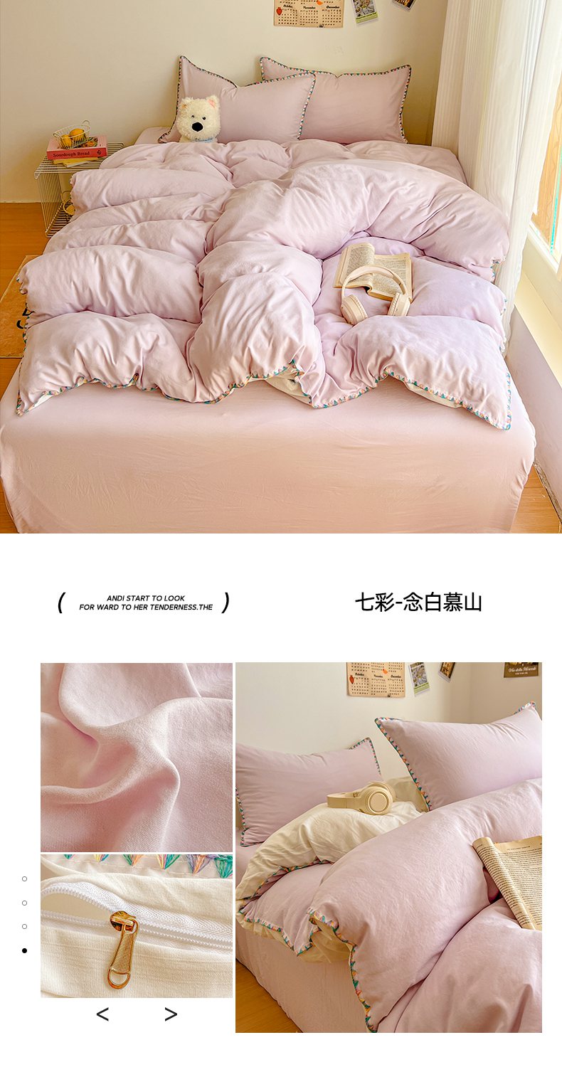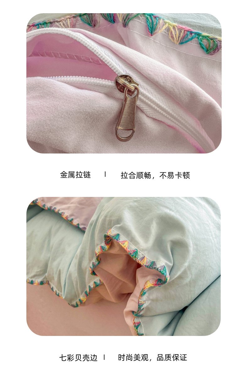 当前位置: 91家纺网 > 商品网购 > 床品套件 > 四件套 > 水洗棉四件套 > 冕悠家纺 2025新款A类七彩贝壳边水洗棉四件套-加微信提供买家秀2 七彩-暮山紫云水蓝