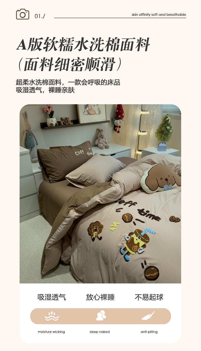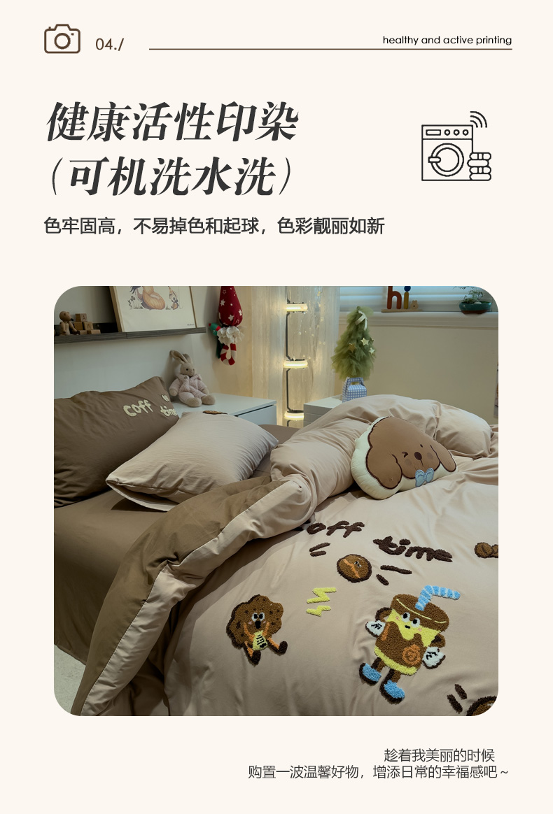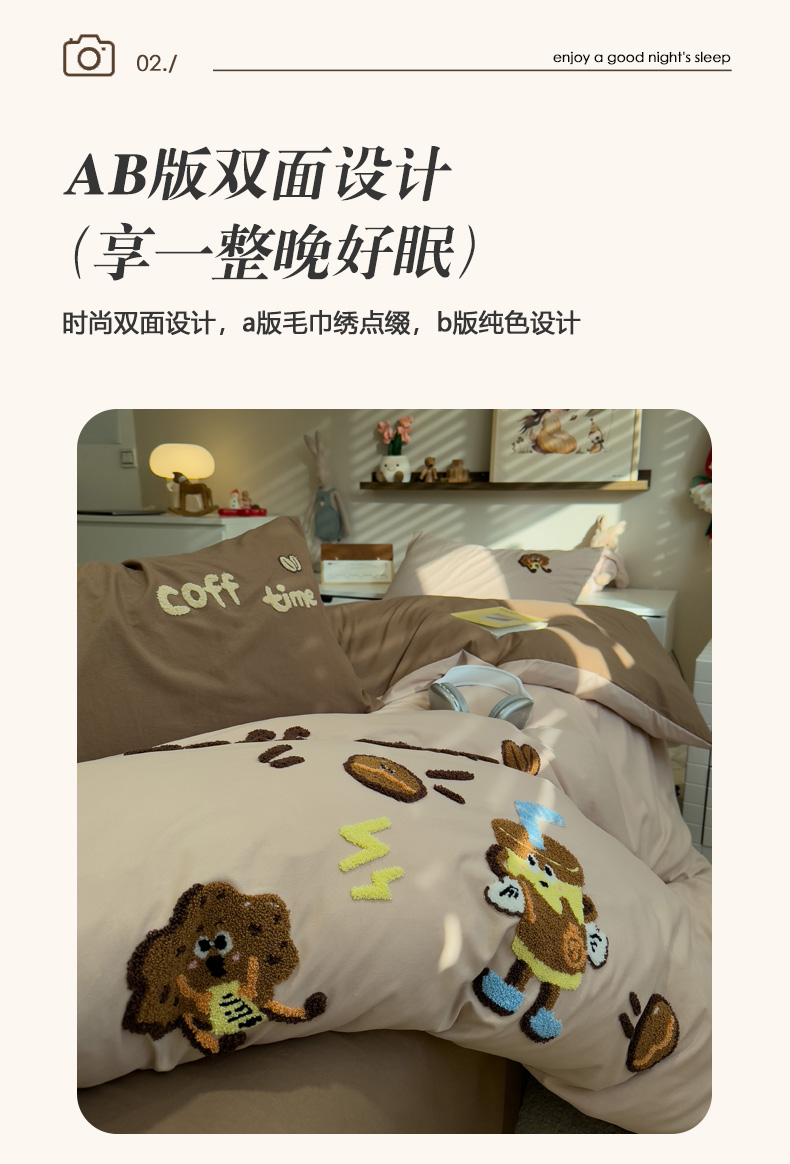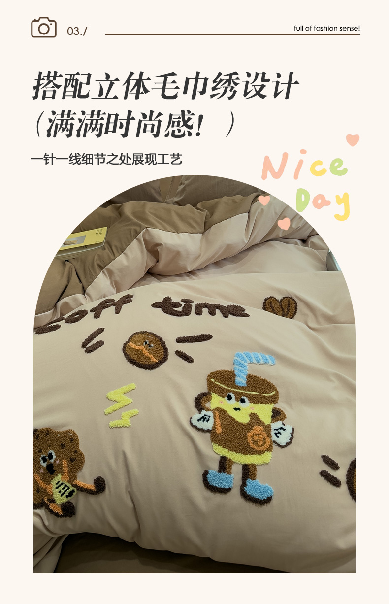 当前位置: 91家纺网 > 商品网购 > 床品套件 > 四件套 > 毛巾绣四件套 > 曼谷家纺 2026新款卡通水洗棉毛巾绣四件套被套 咖啡时光-奶咖